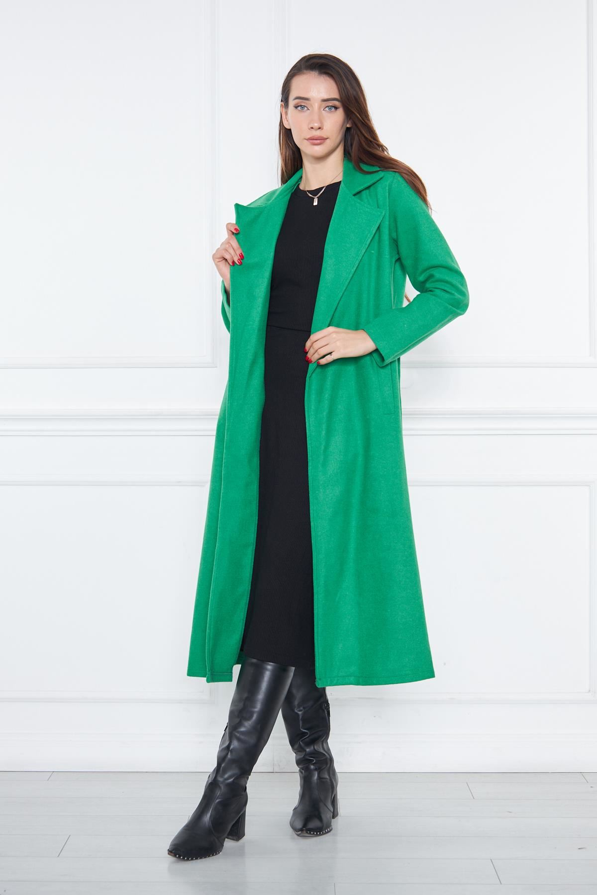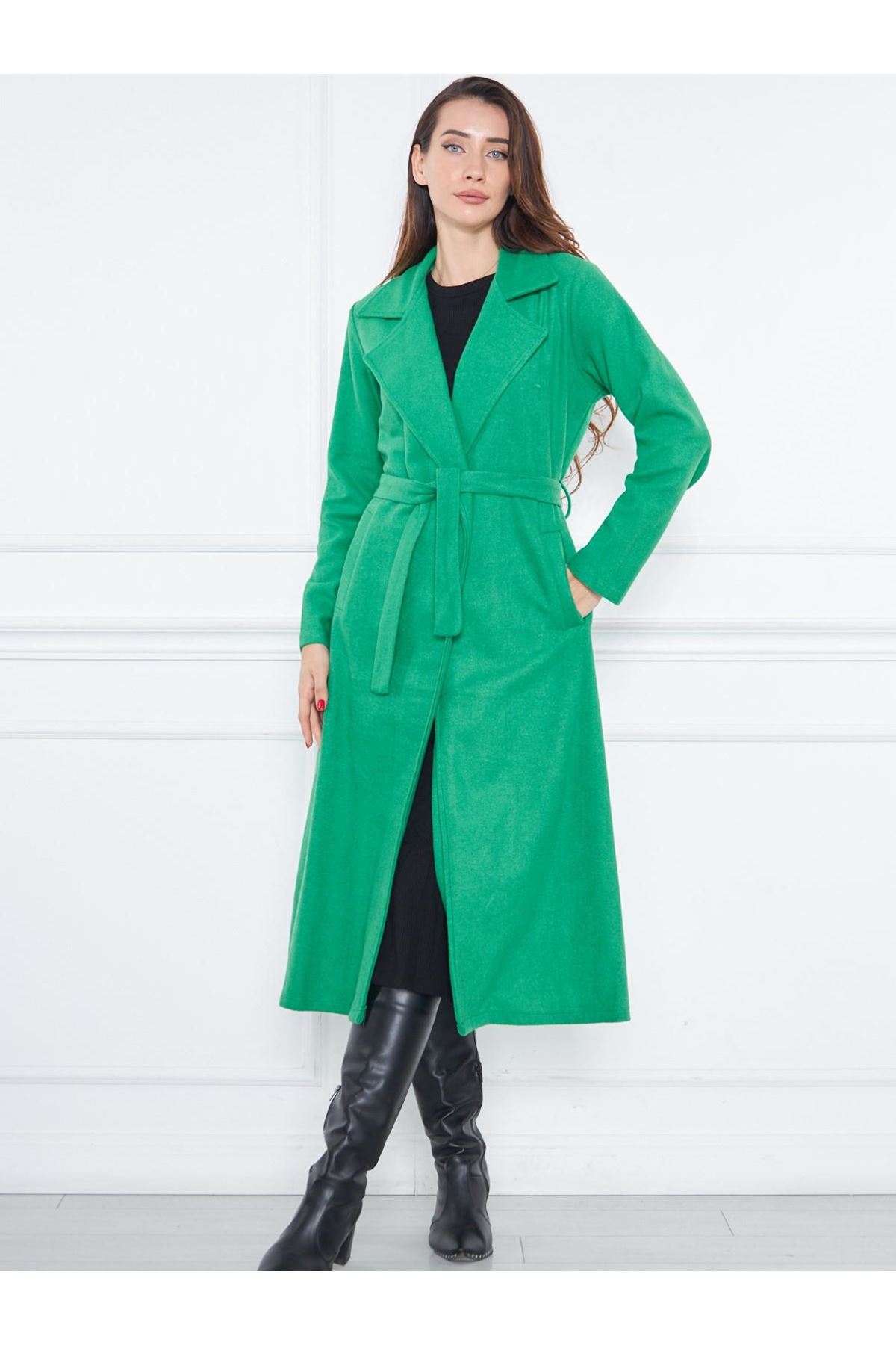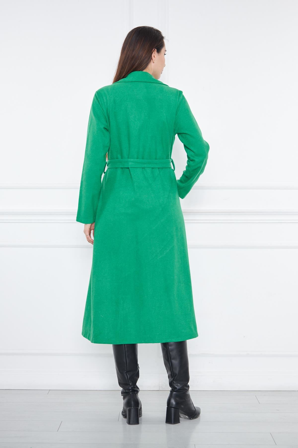 KADIN KAŞE ASTARSIZ KUŞAKLI KABAN YEŞİL