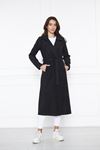 Kadın Beli Büzgülü Kısa Düz Desenli Trençkot SİYAH