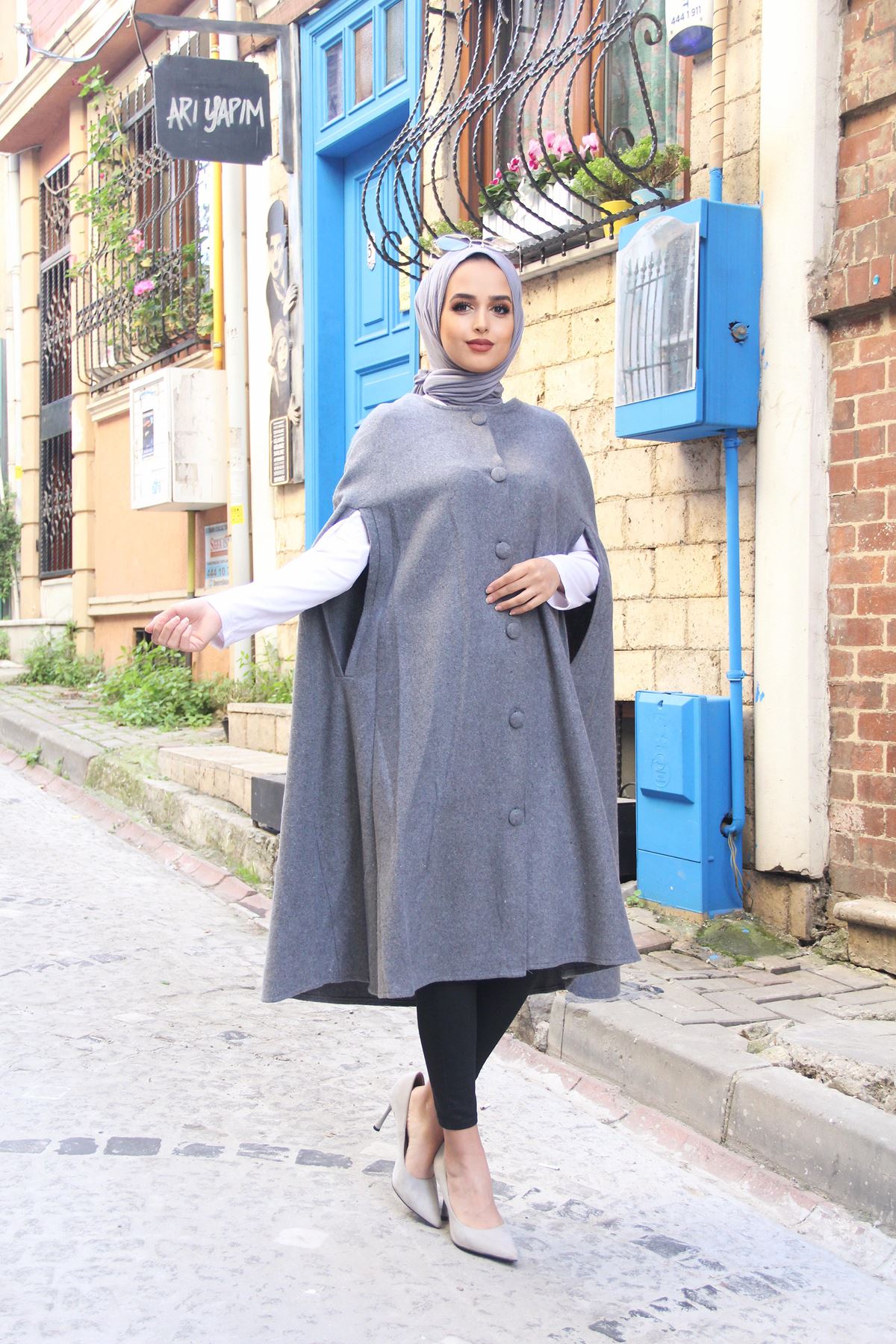 KADIN KAŞE PELERİN PANÇO GRİ