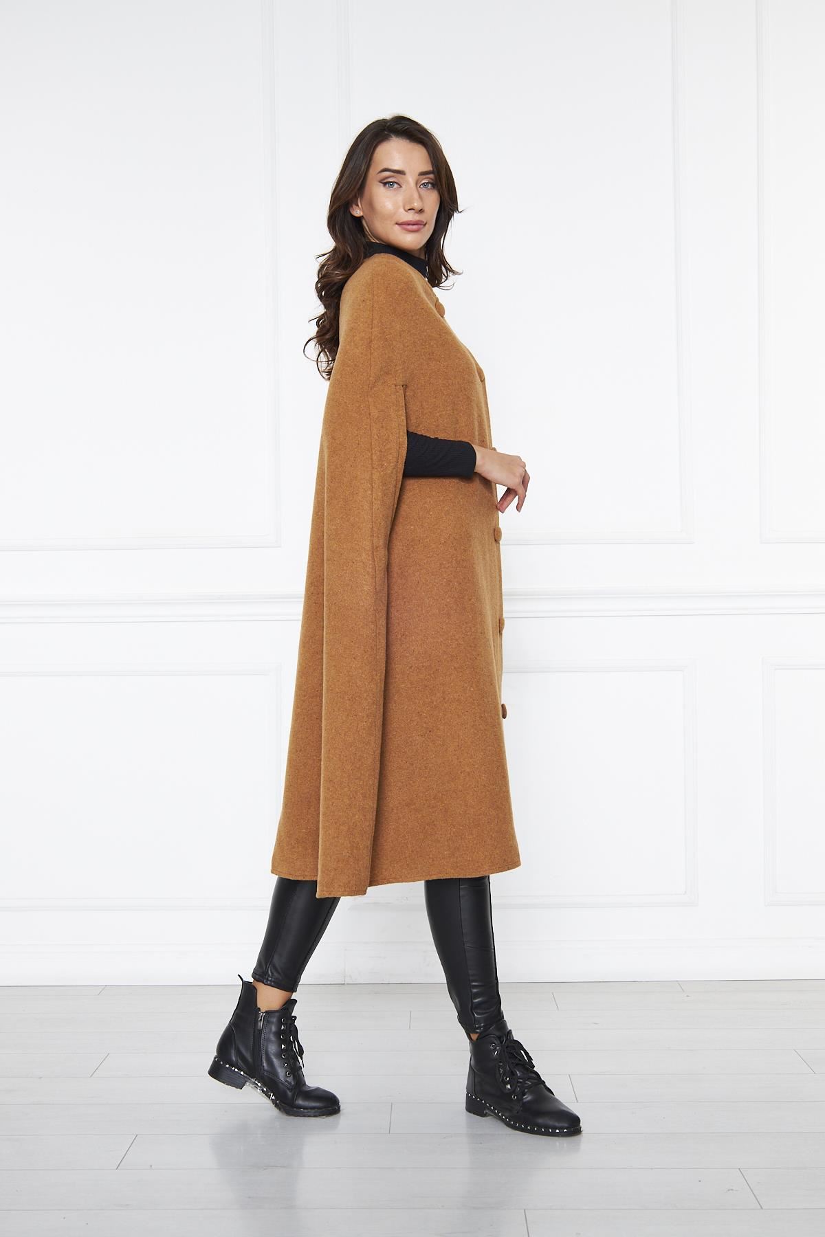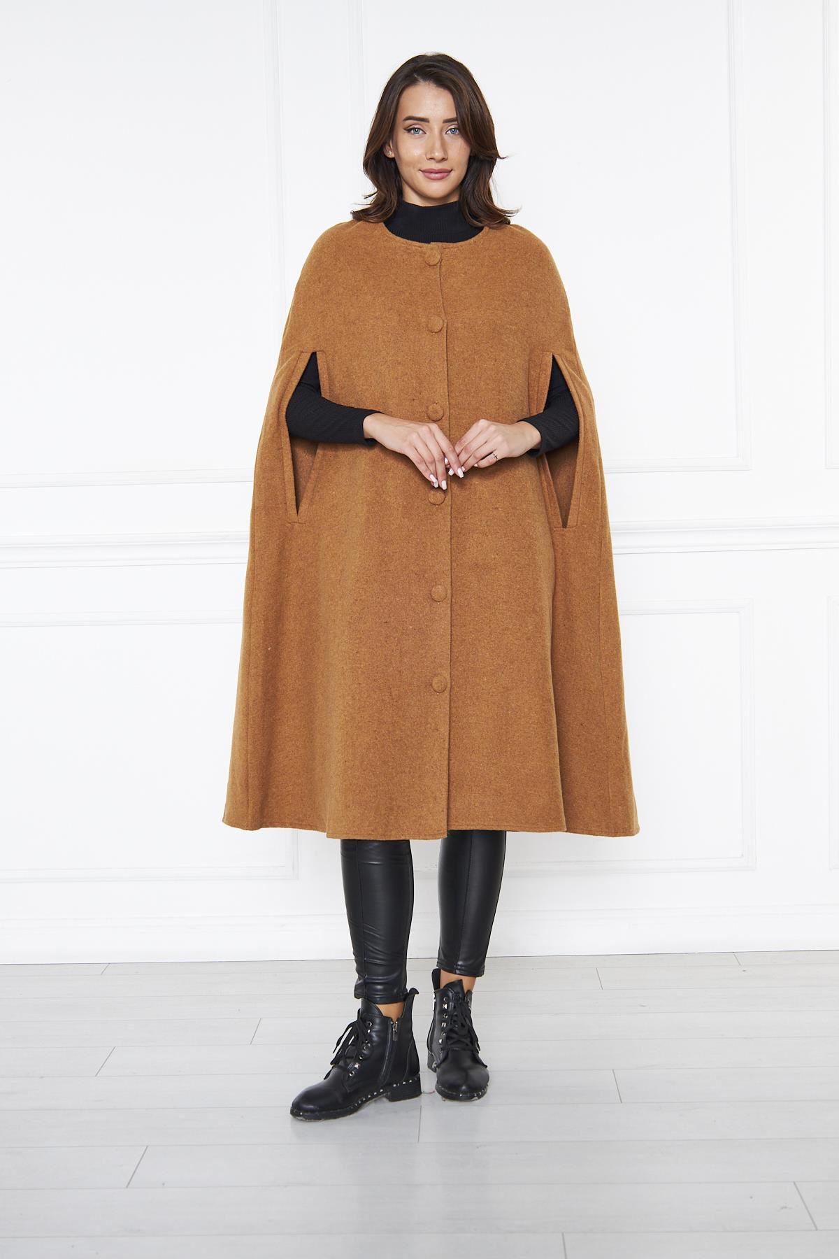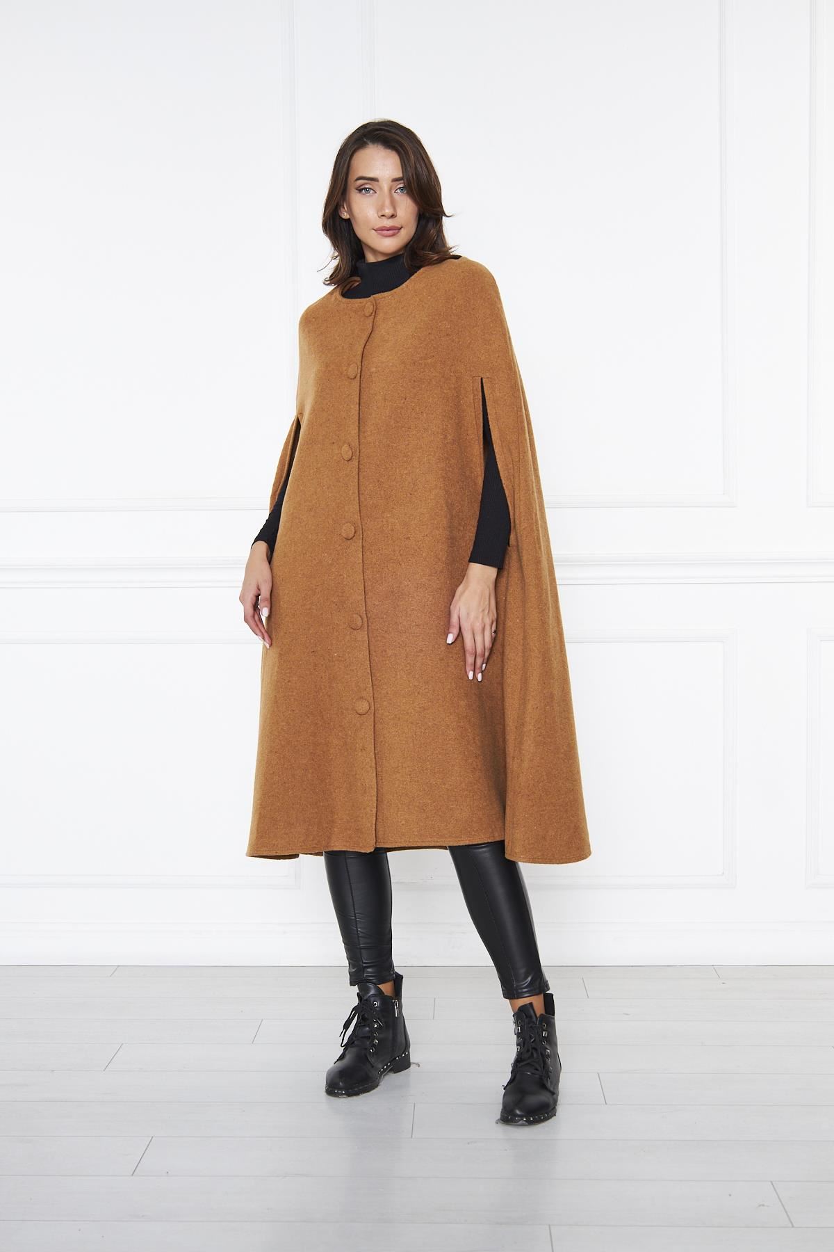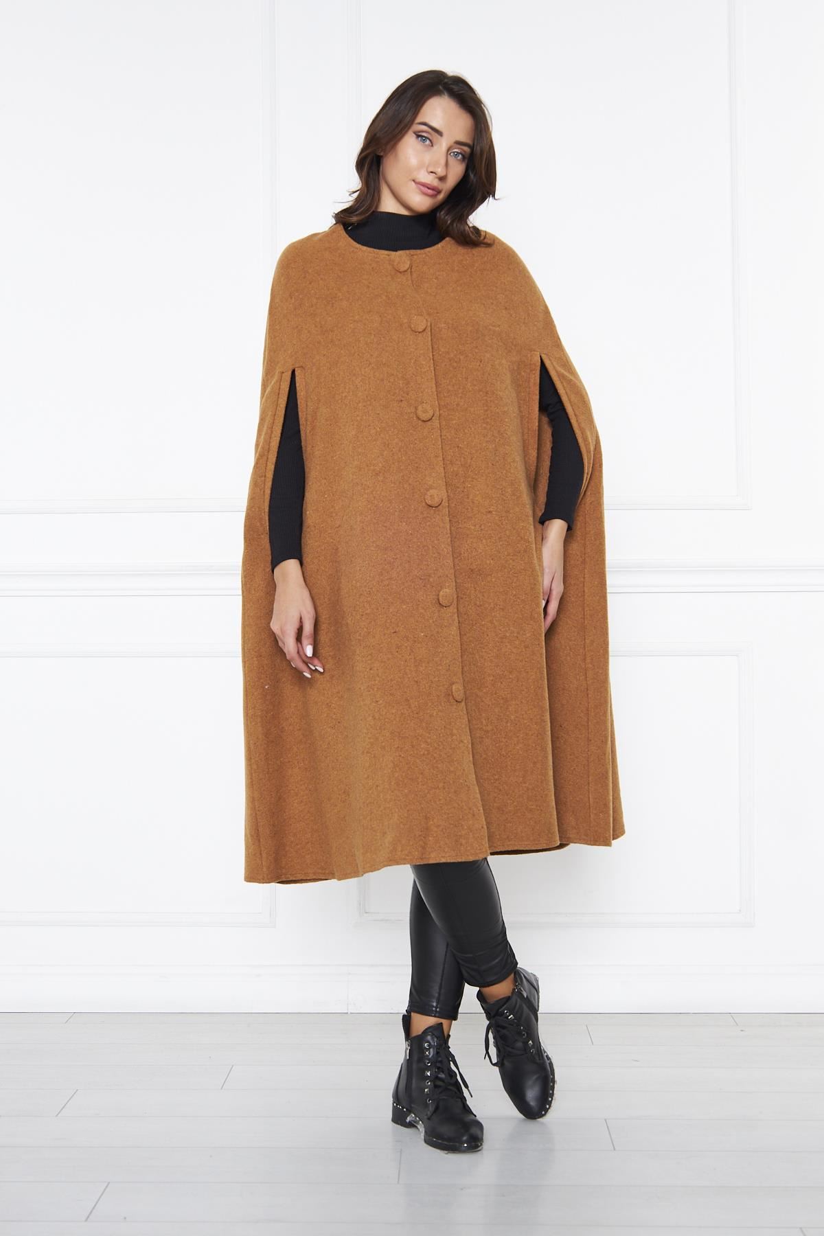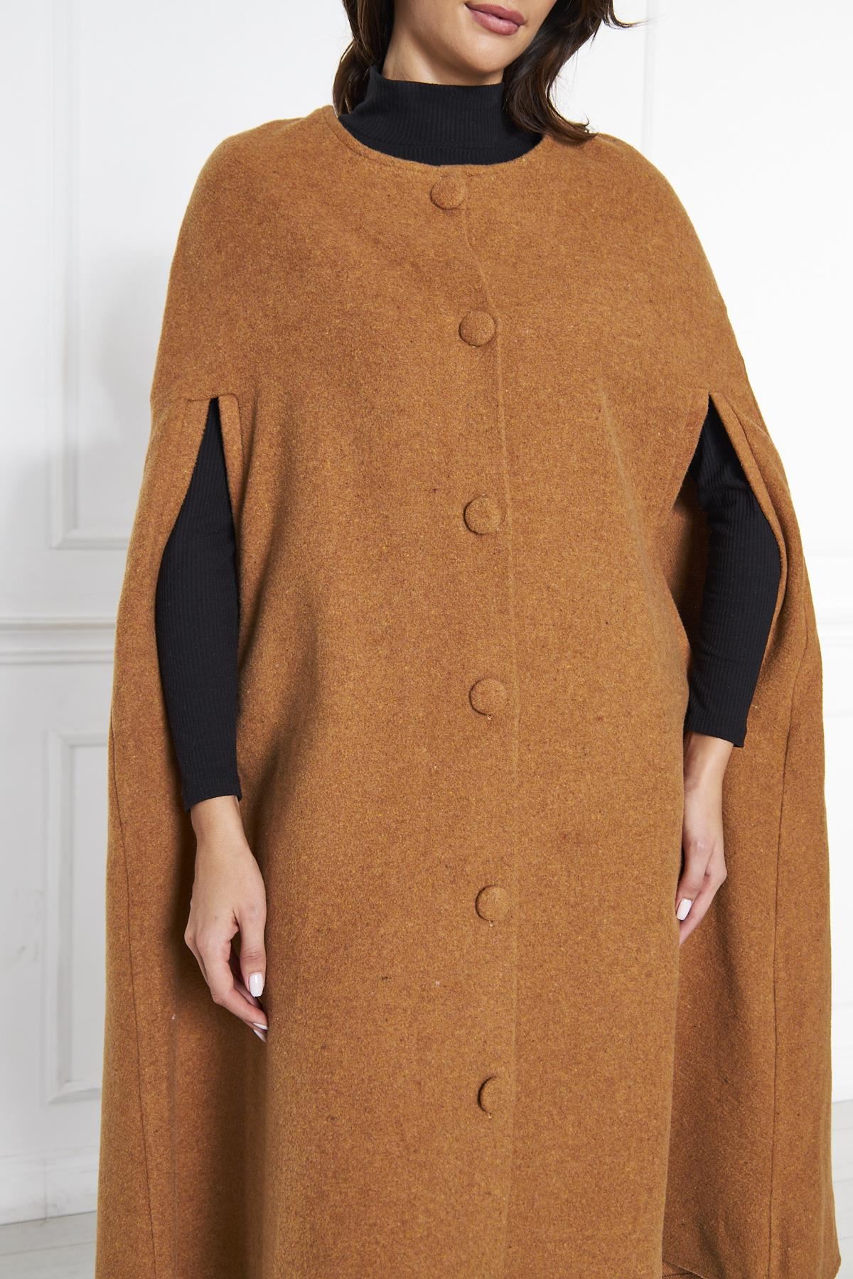 Kadın Yün Karışımlı Astarsız Buklet Kaban HAKİ