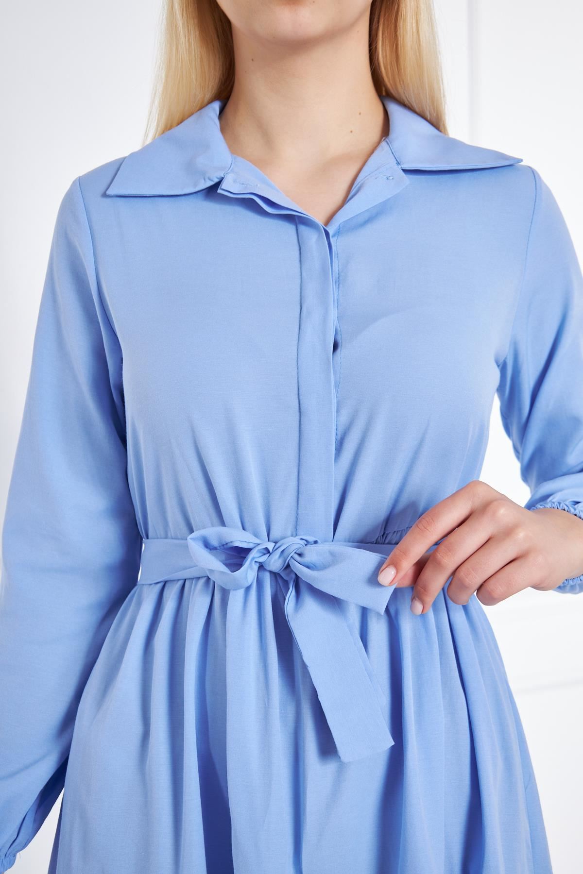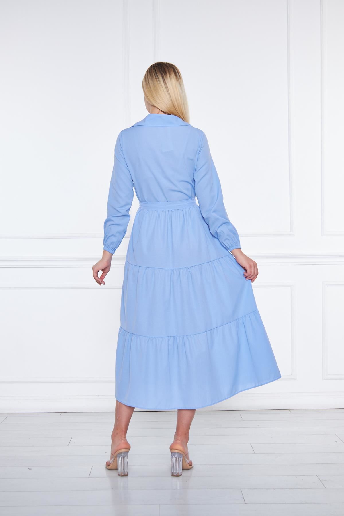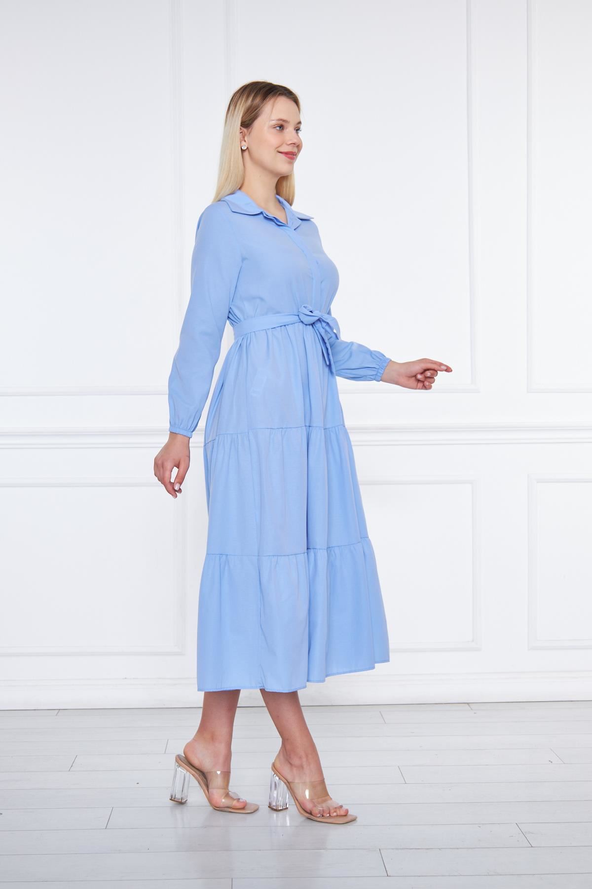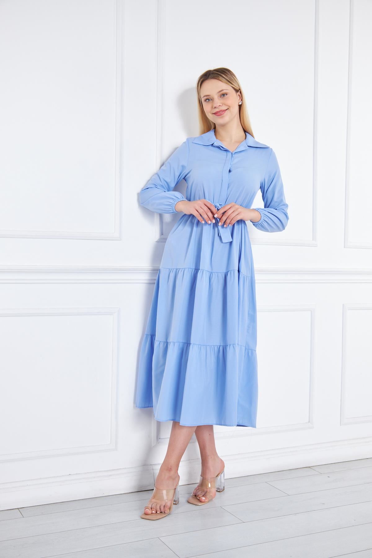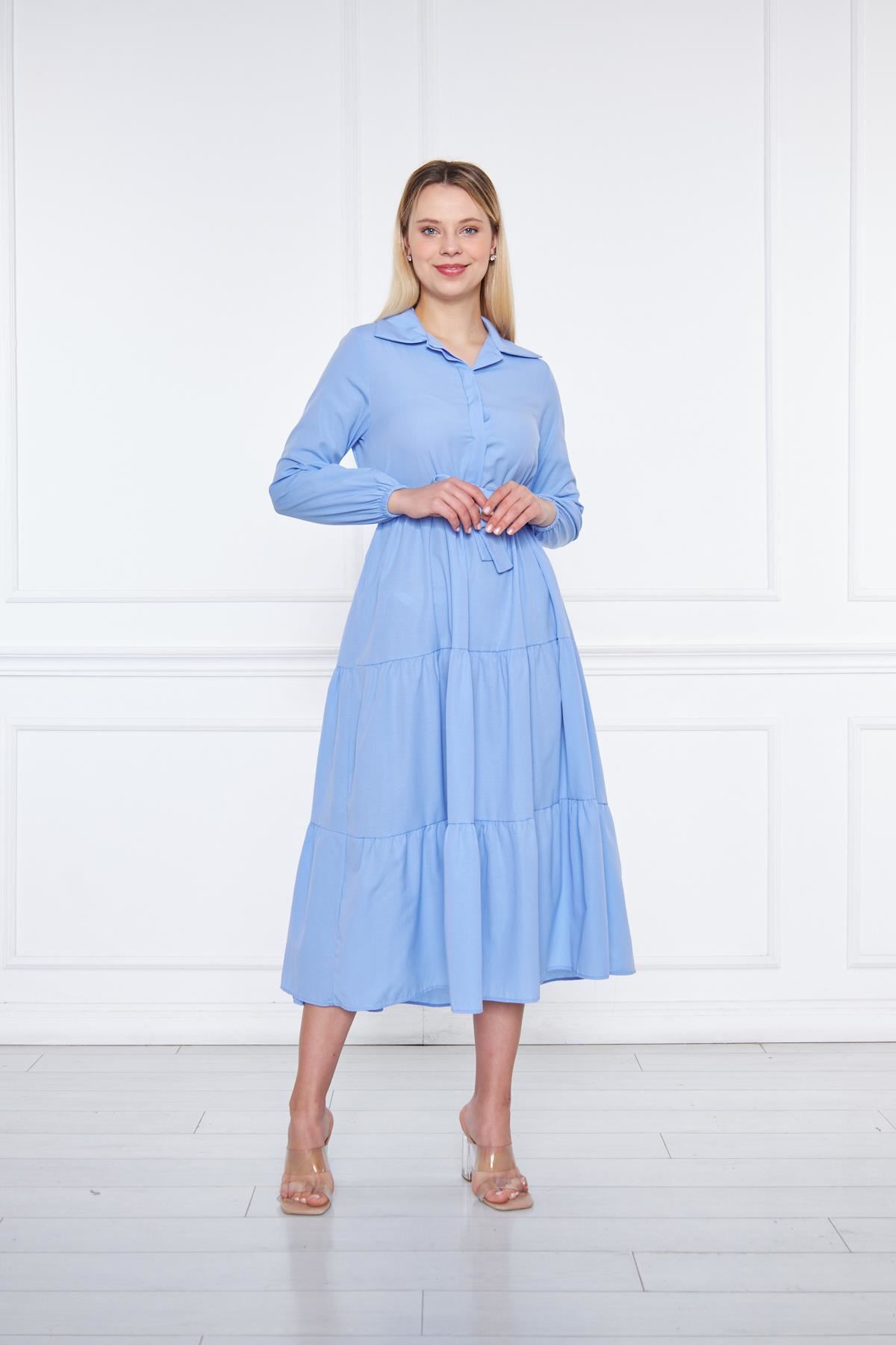 Kadın Katlı Gömlek Yaka Elbise BEBE MAVİ
