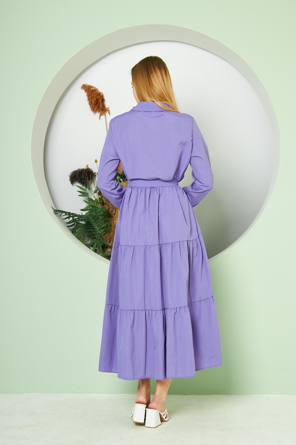 Kadın Katlı Gömlek Yaka Elbise MOR