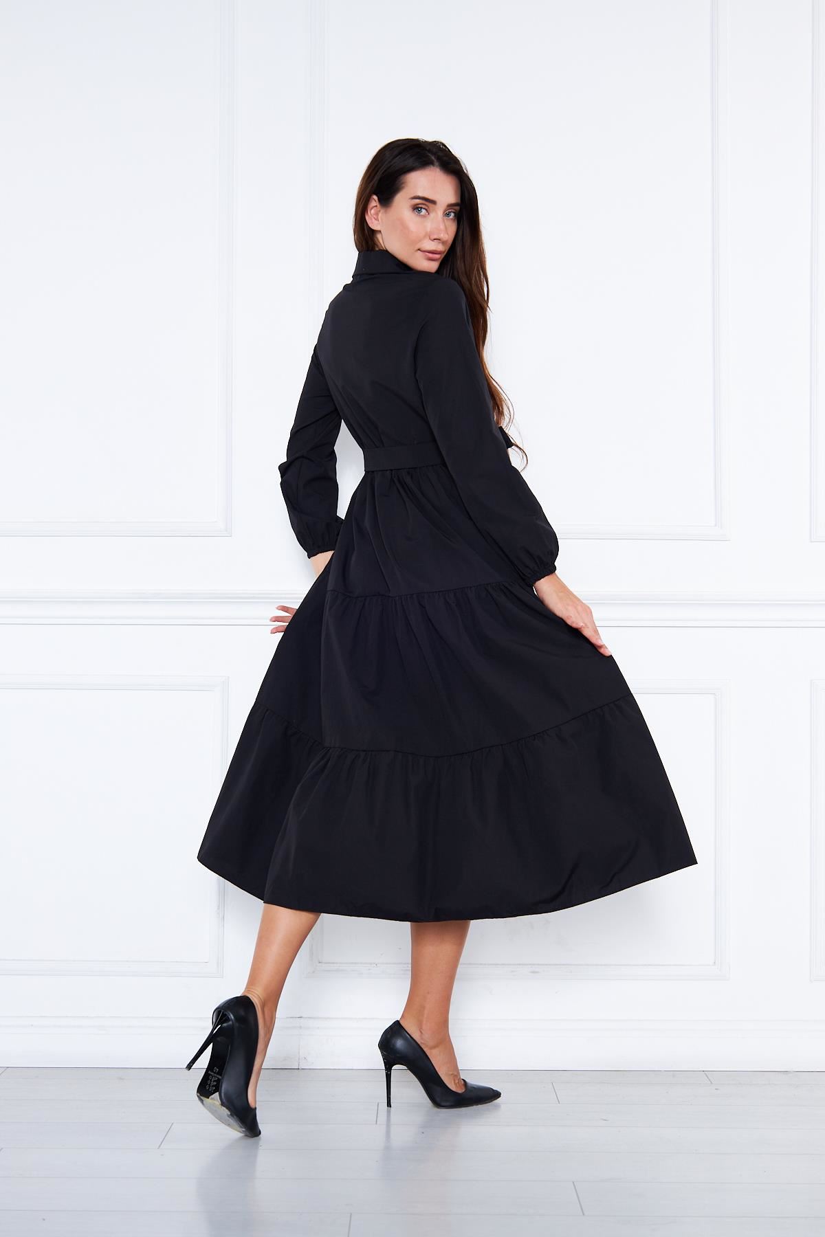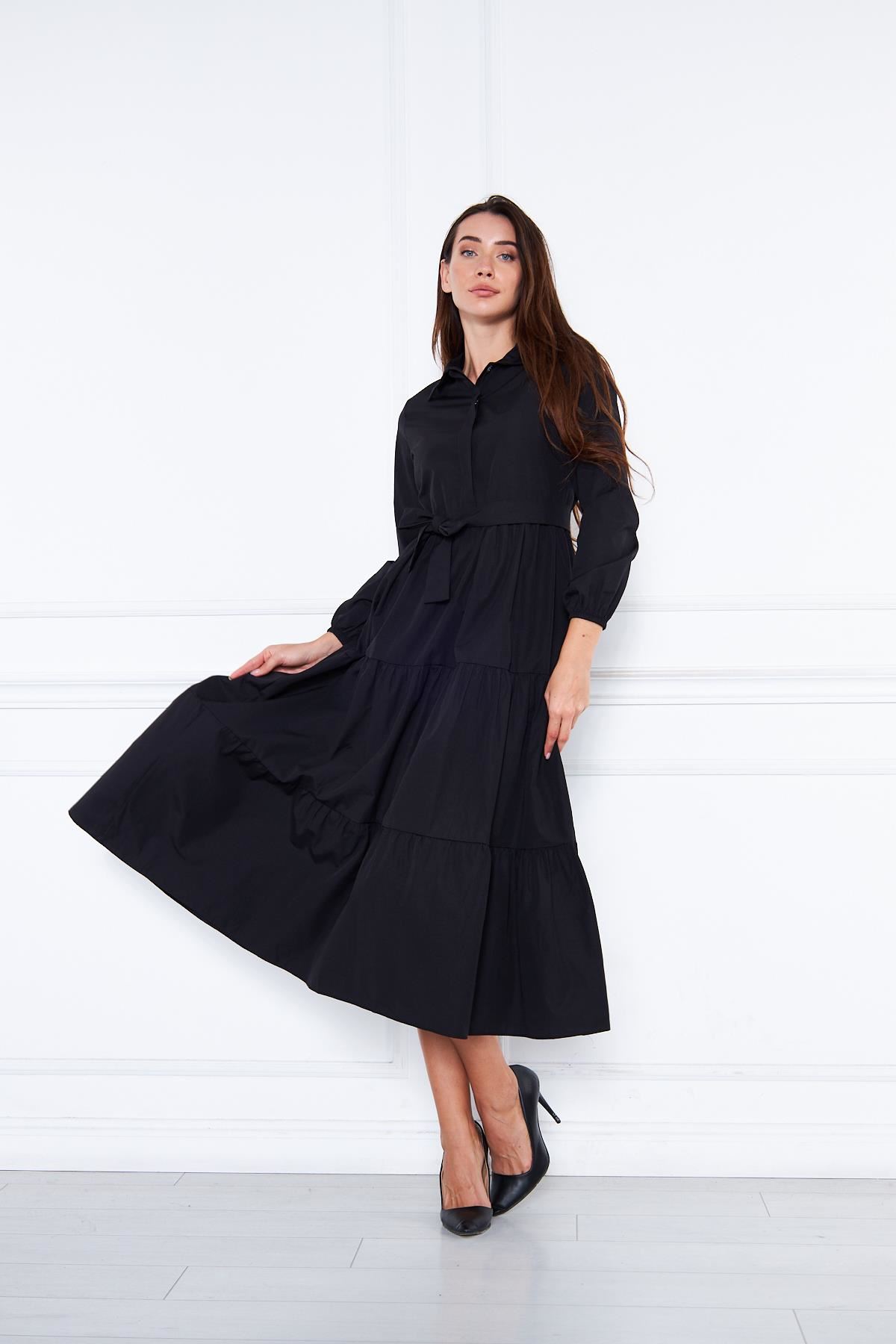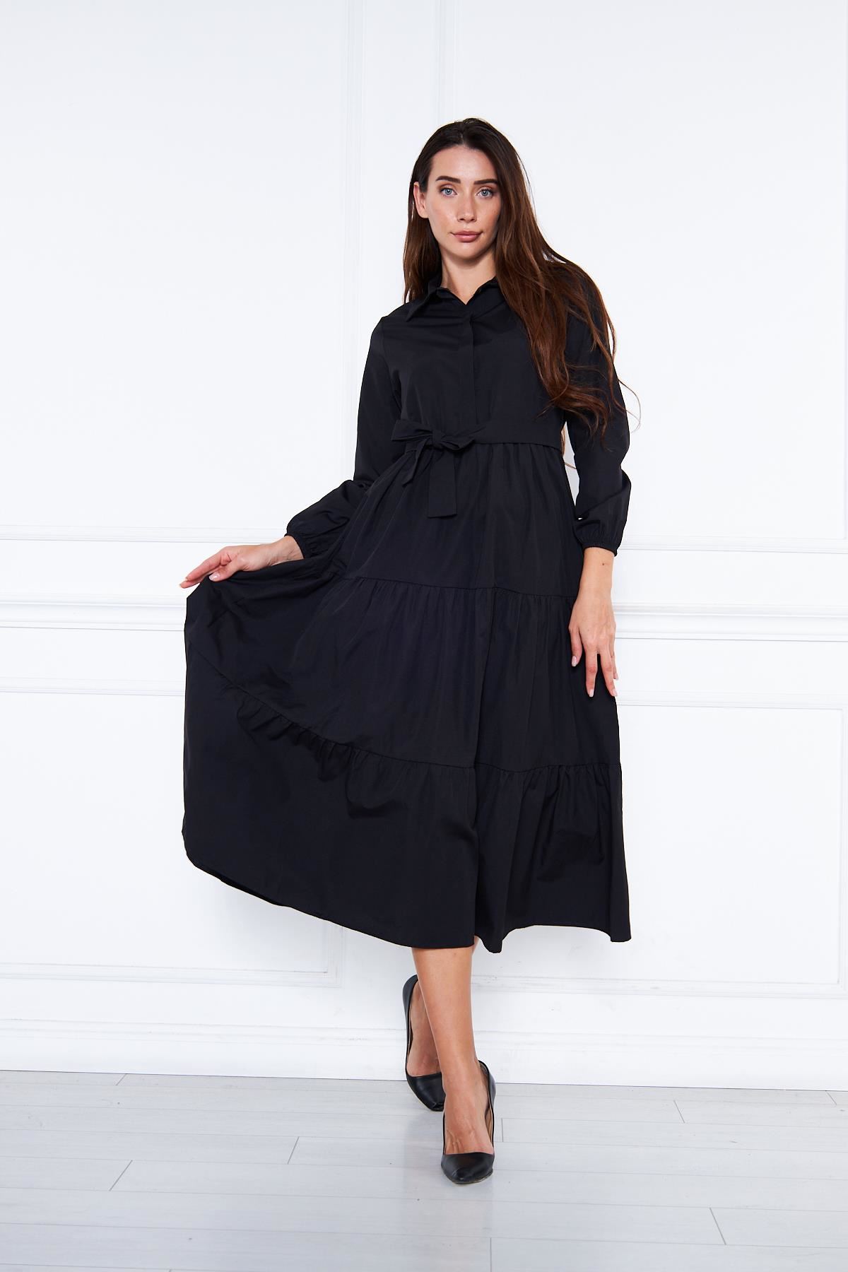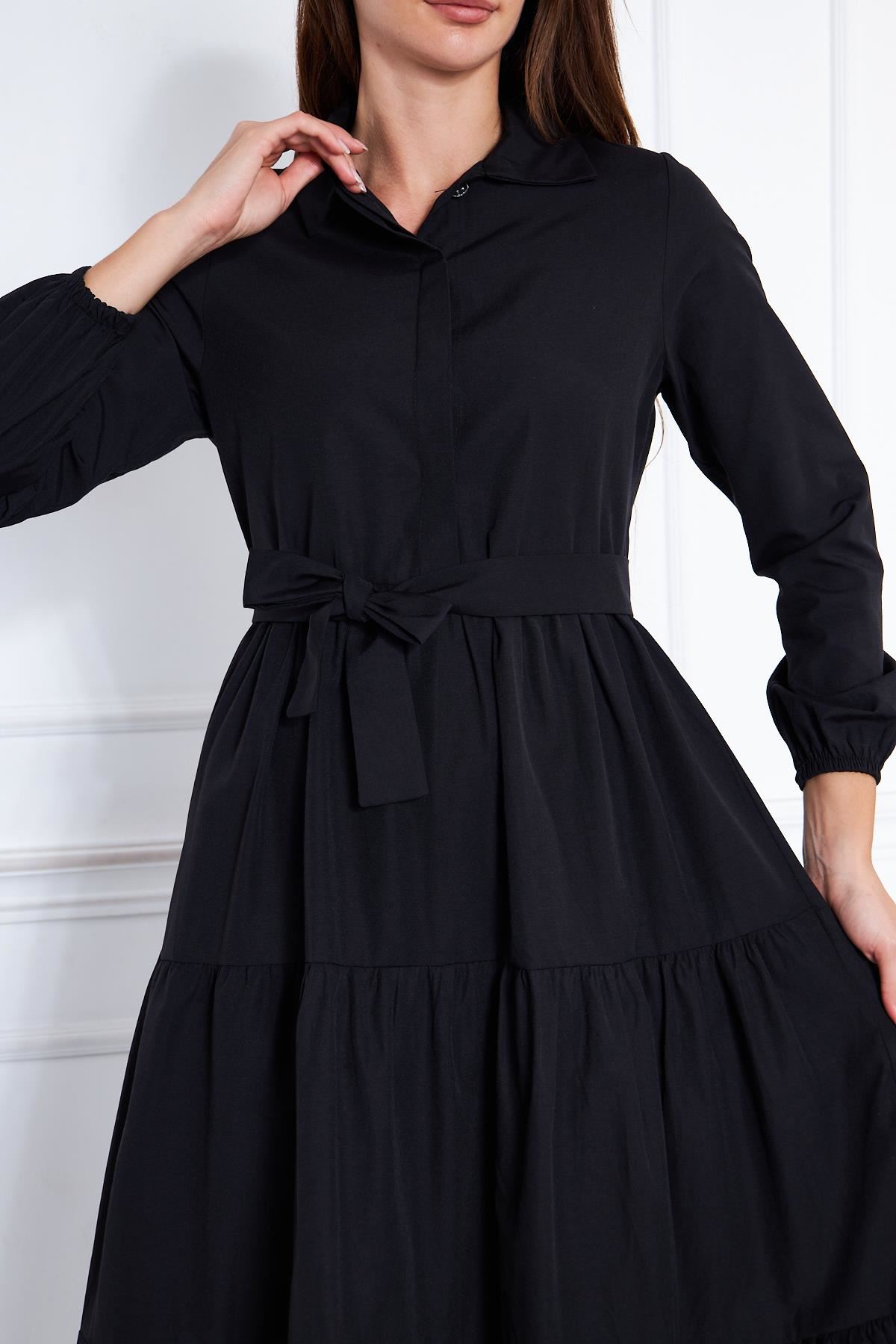 Kadın Katlı Gömlek Yaka Elbise SİYAH