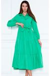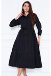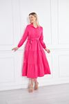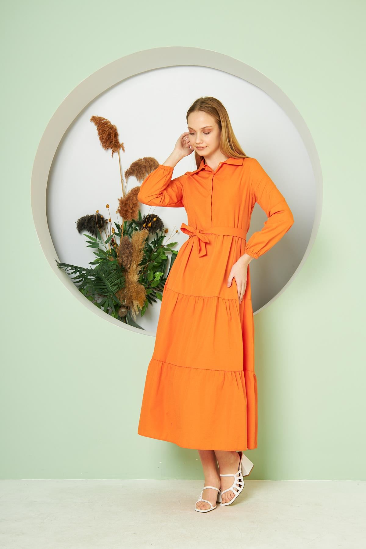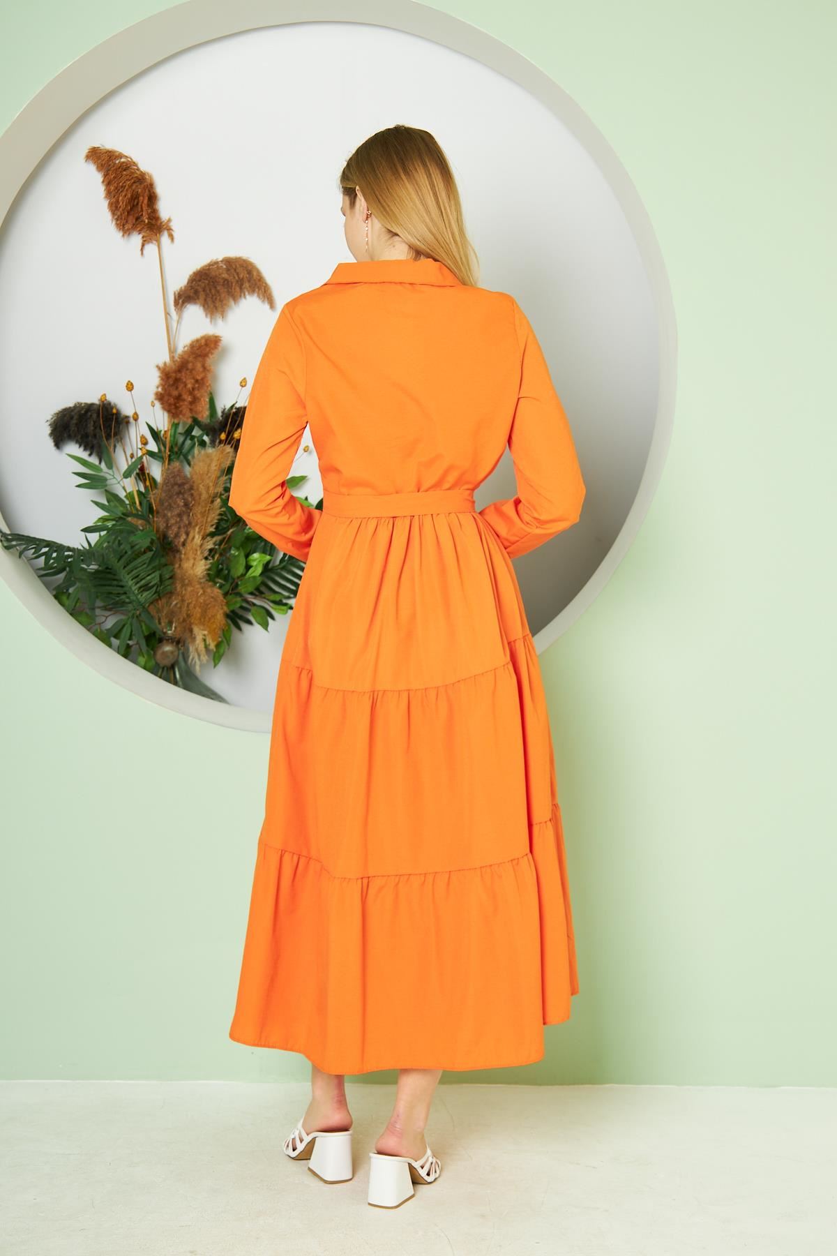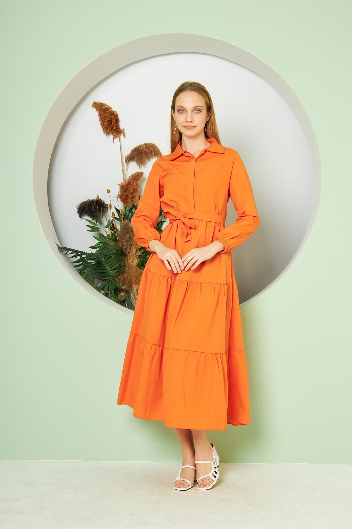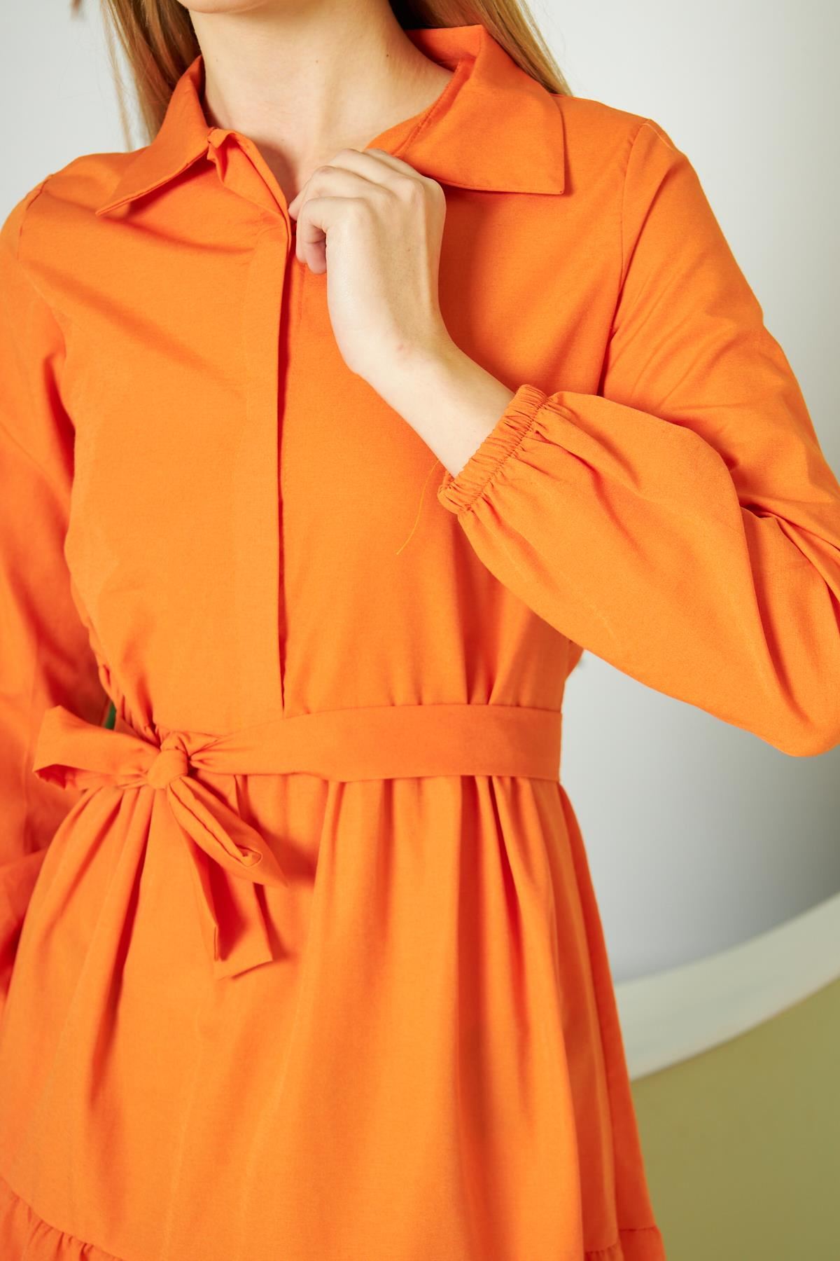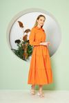 Kadın Katlı Gömlek Yaka Elbise Turuncu