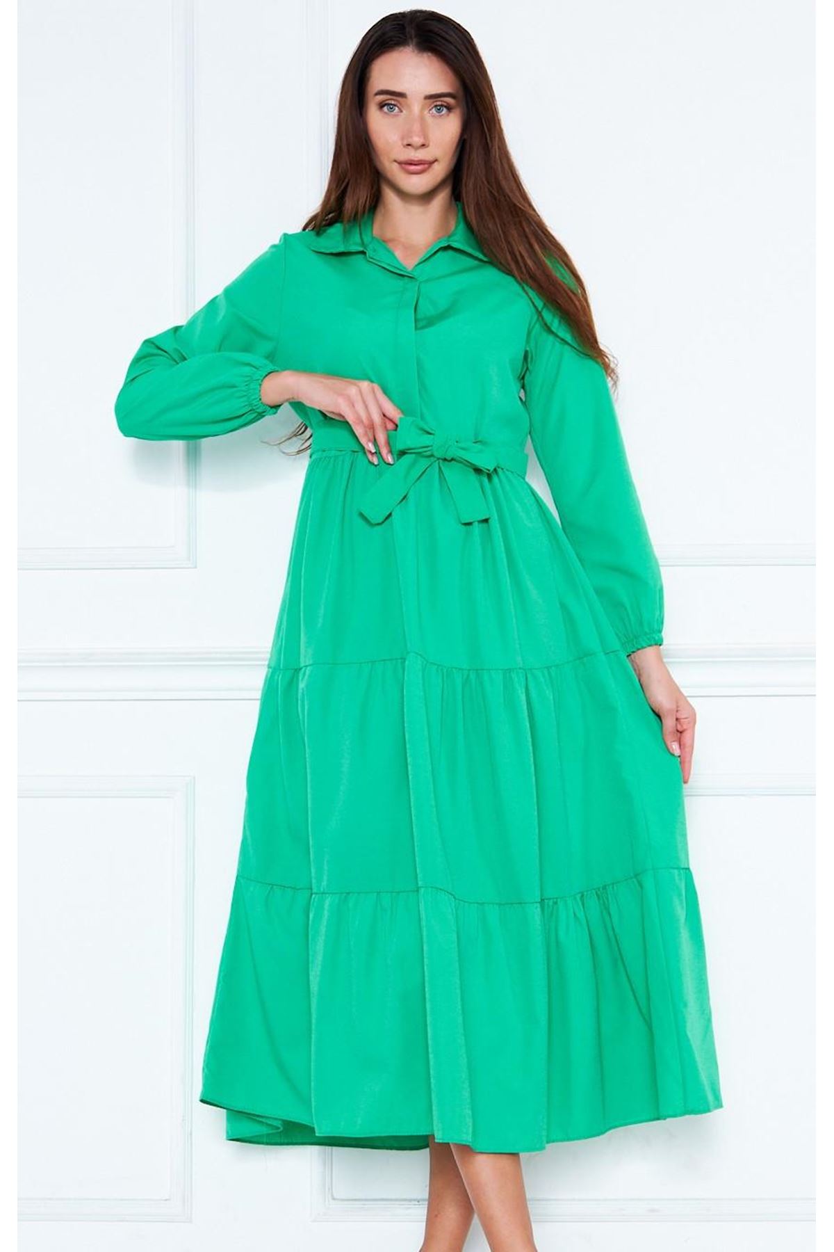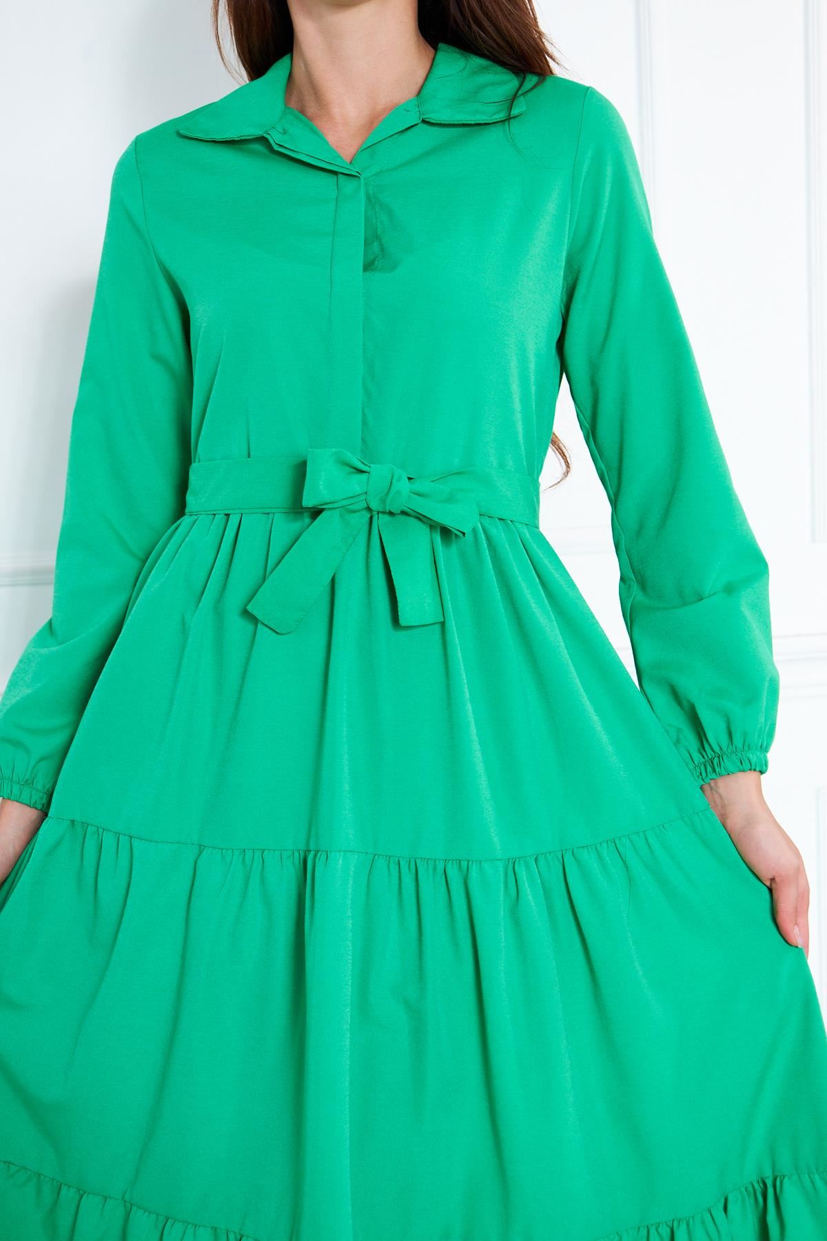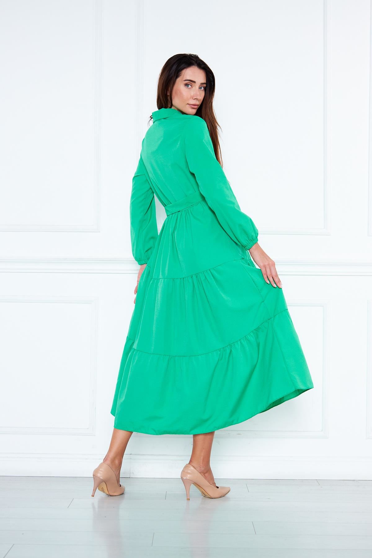 Kadın Katlı Gömlek Yaka Elbise YEŞİL