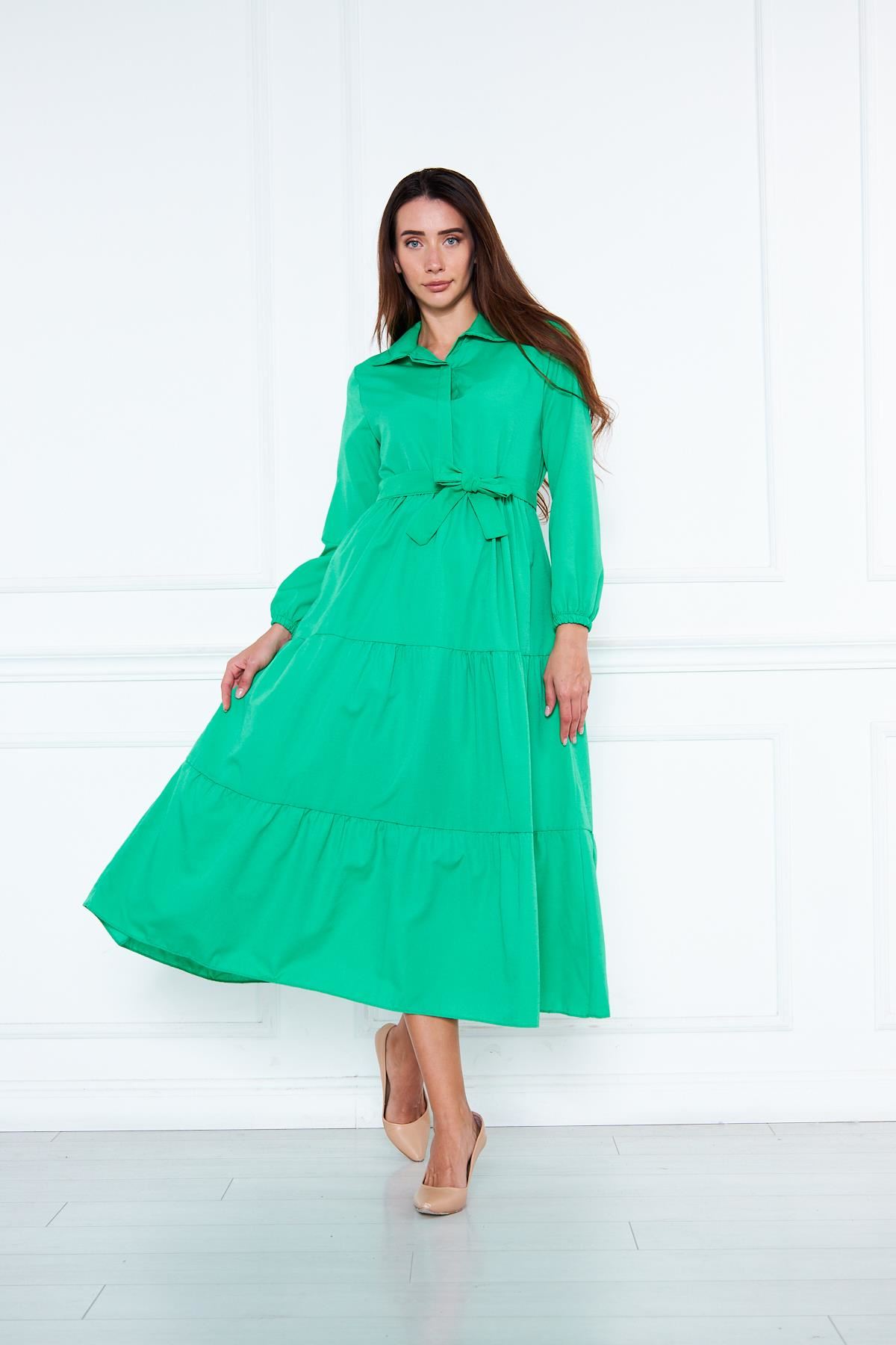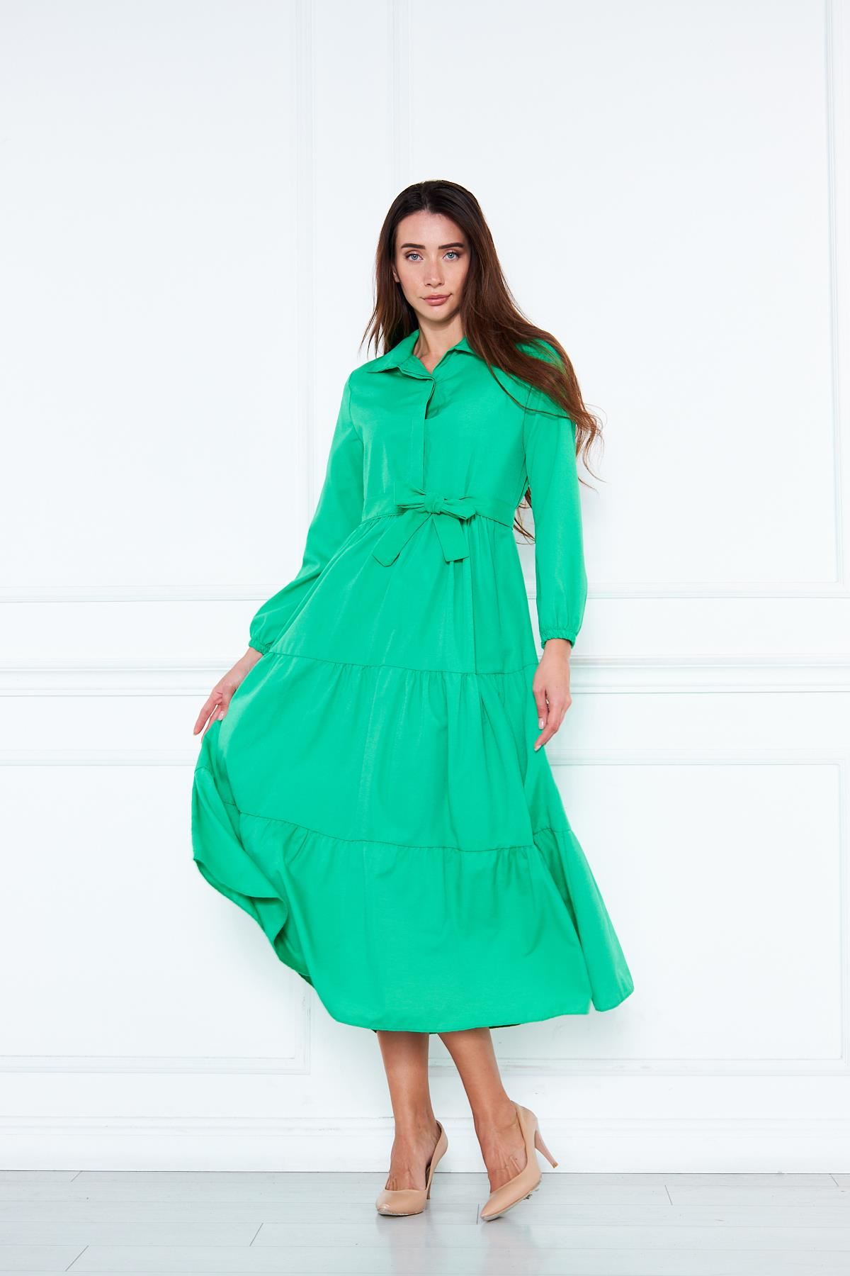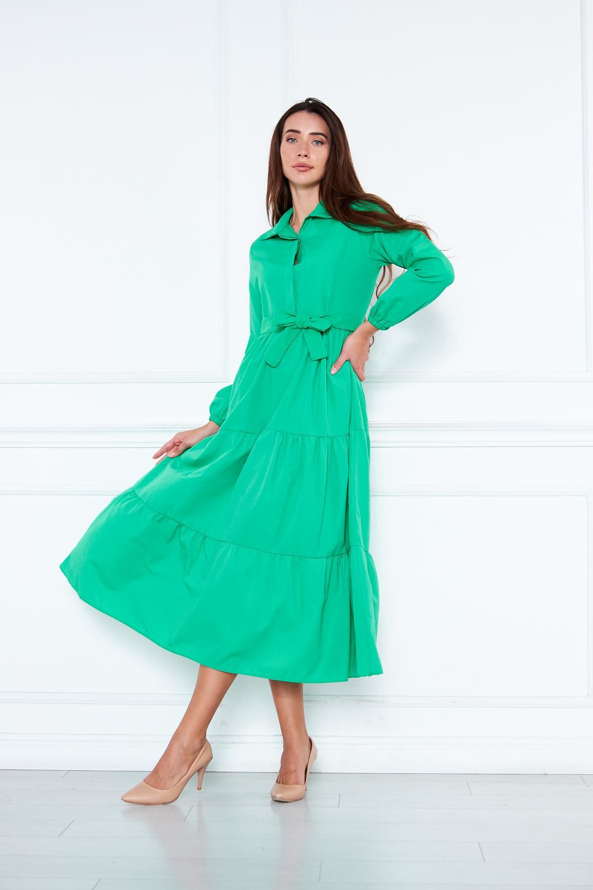 Kadın Katlı Gömlek Yaka Elbise YEŞİL