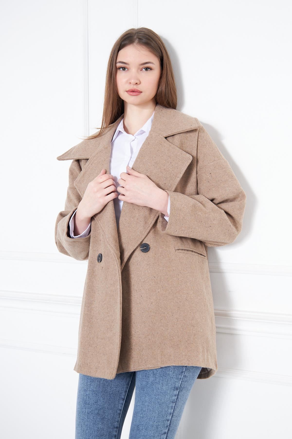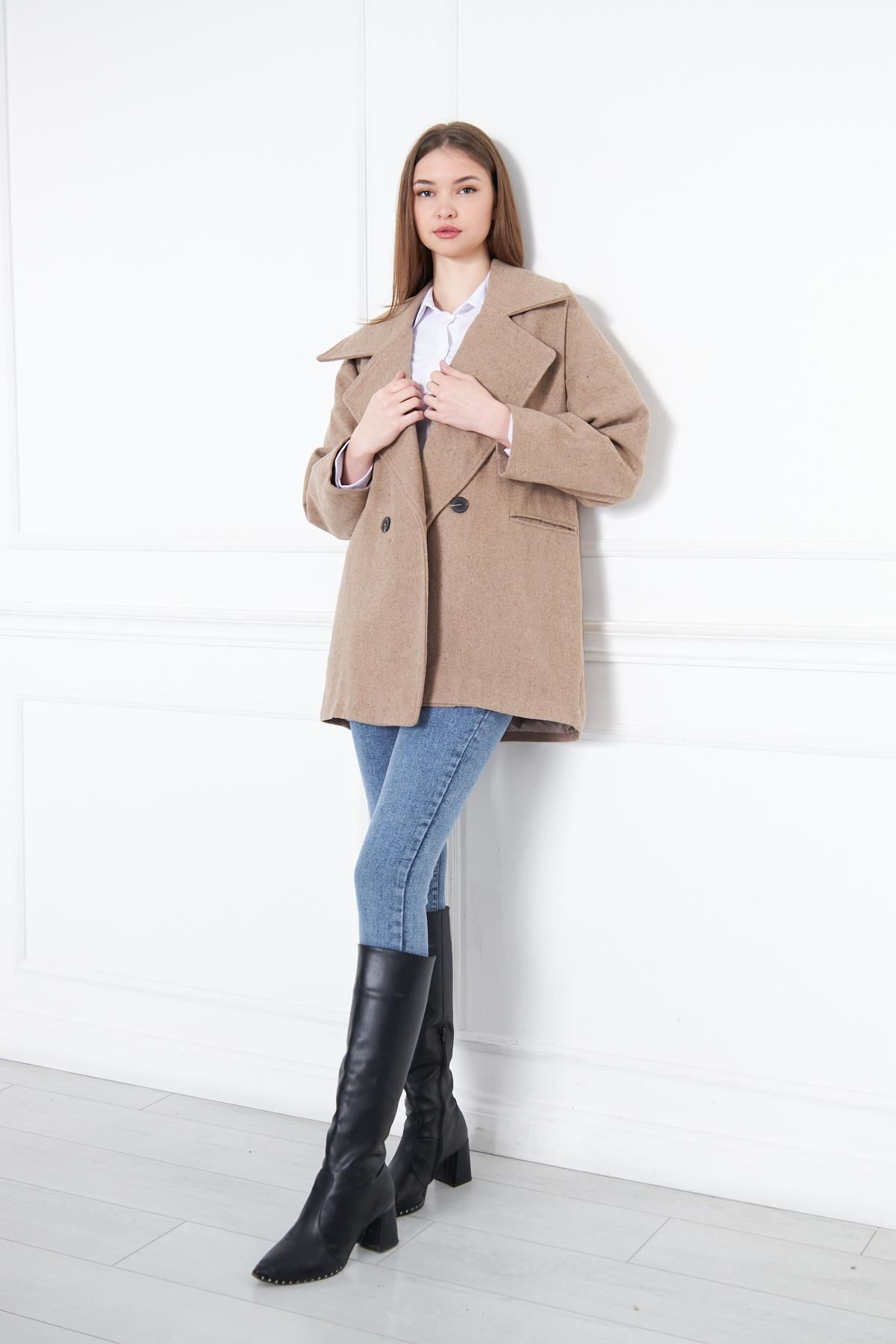 Kadın Kısa Kaşe Kaban VİZON