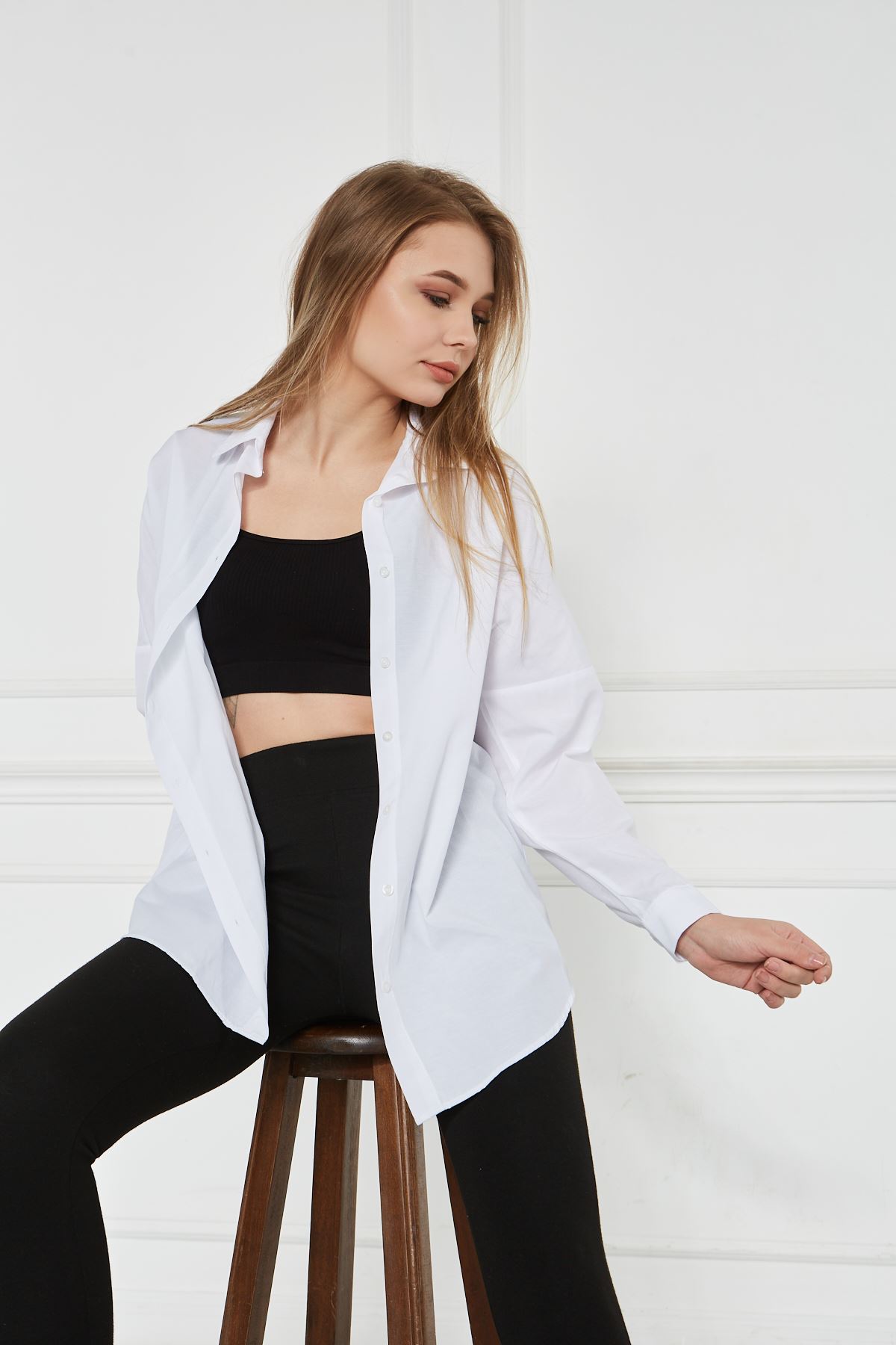Kadın Oversize Uzun Basic Gömlek BEYAZ