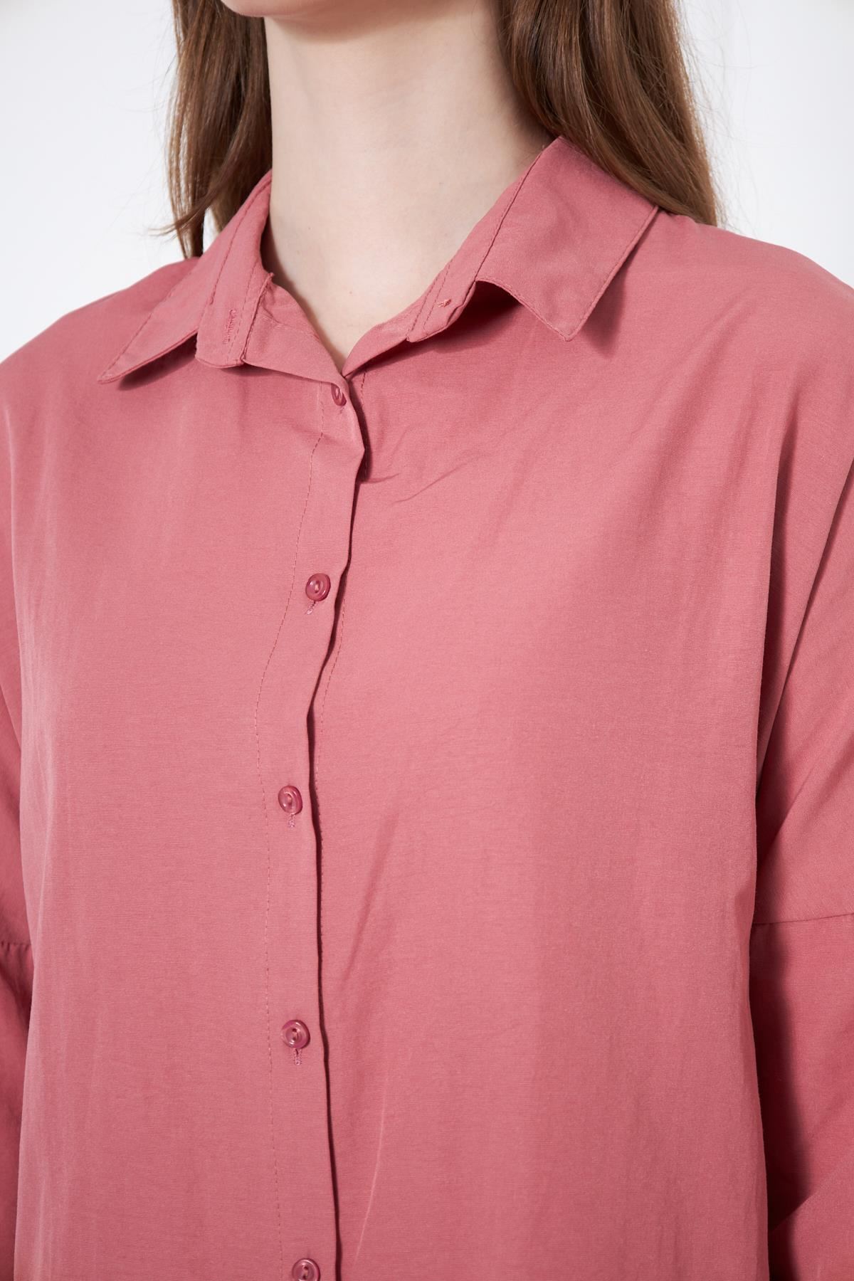 Kadın Oversize Uzun Basic Gömlek GÜL KURUSU