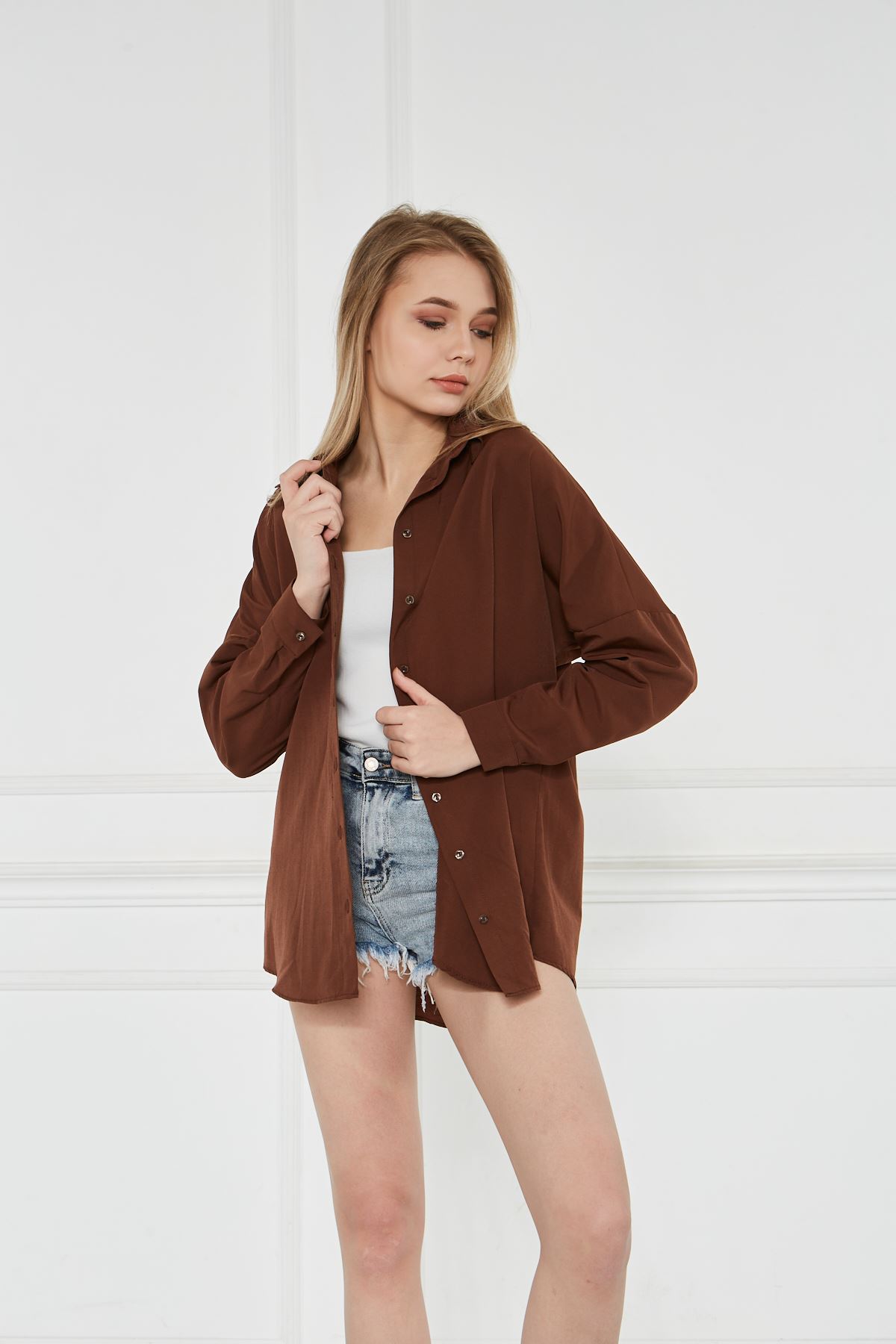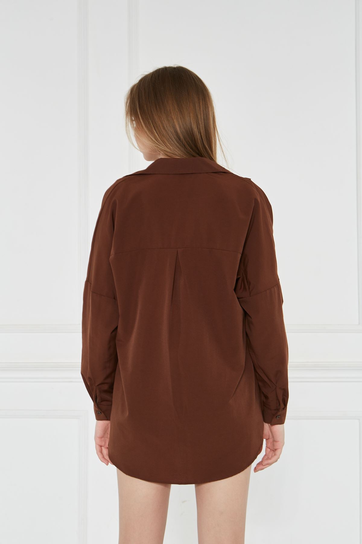 Kadın Oversize Uzun Basic Gömlek KAHVE