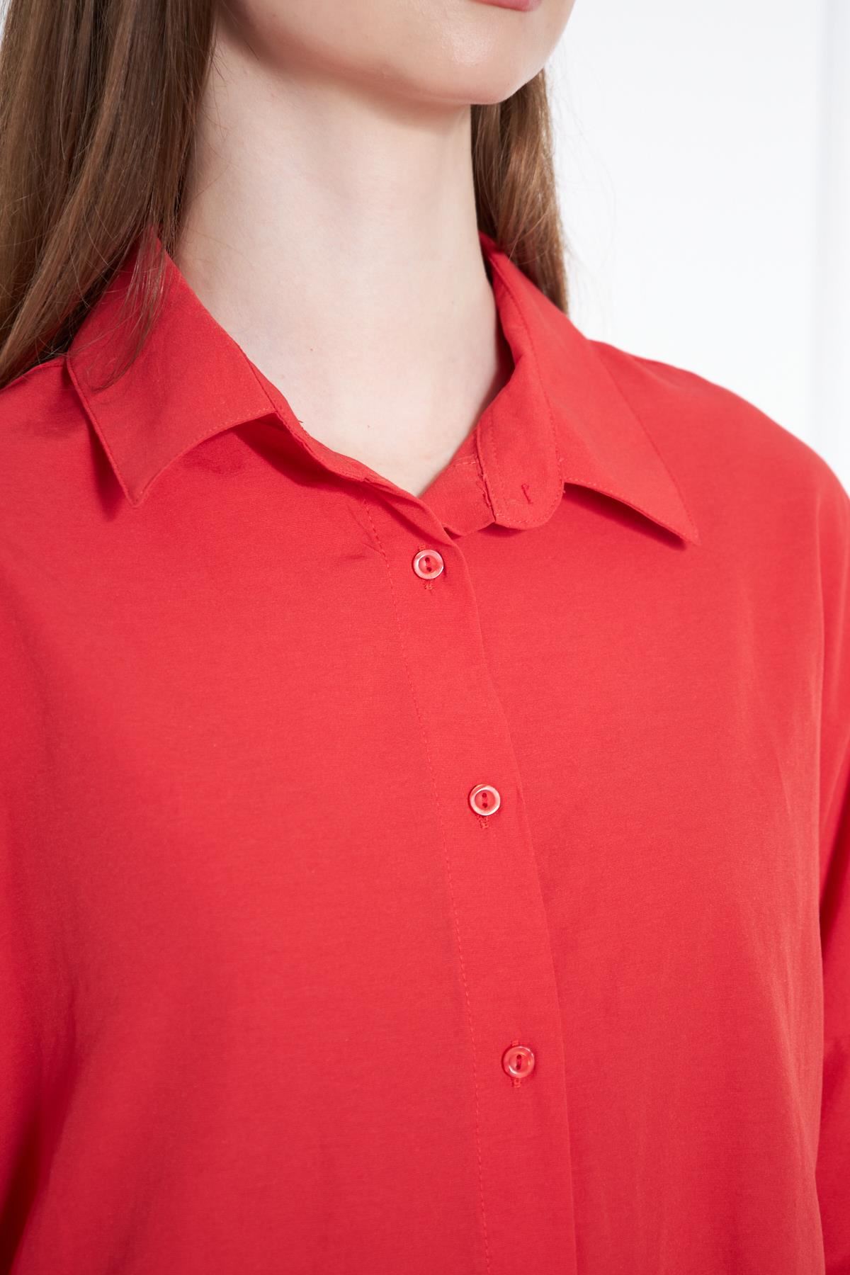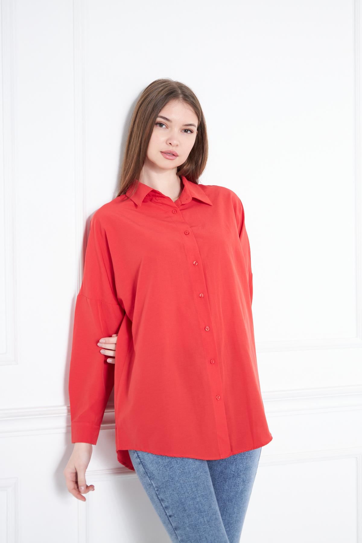 Kadın Oversize Uzun Basic Gömlek KIRMIZI