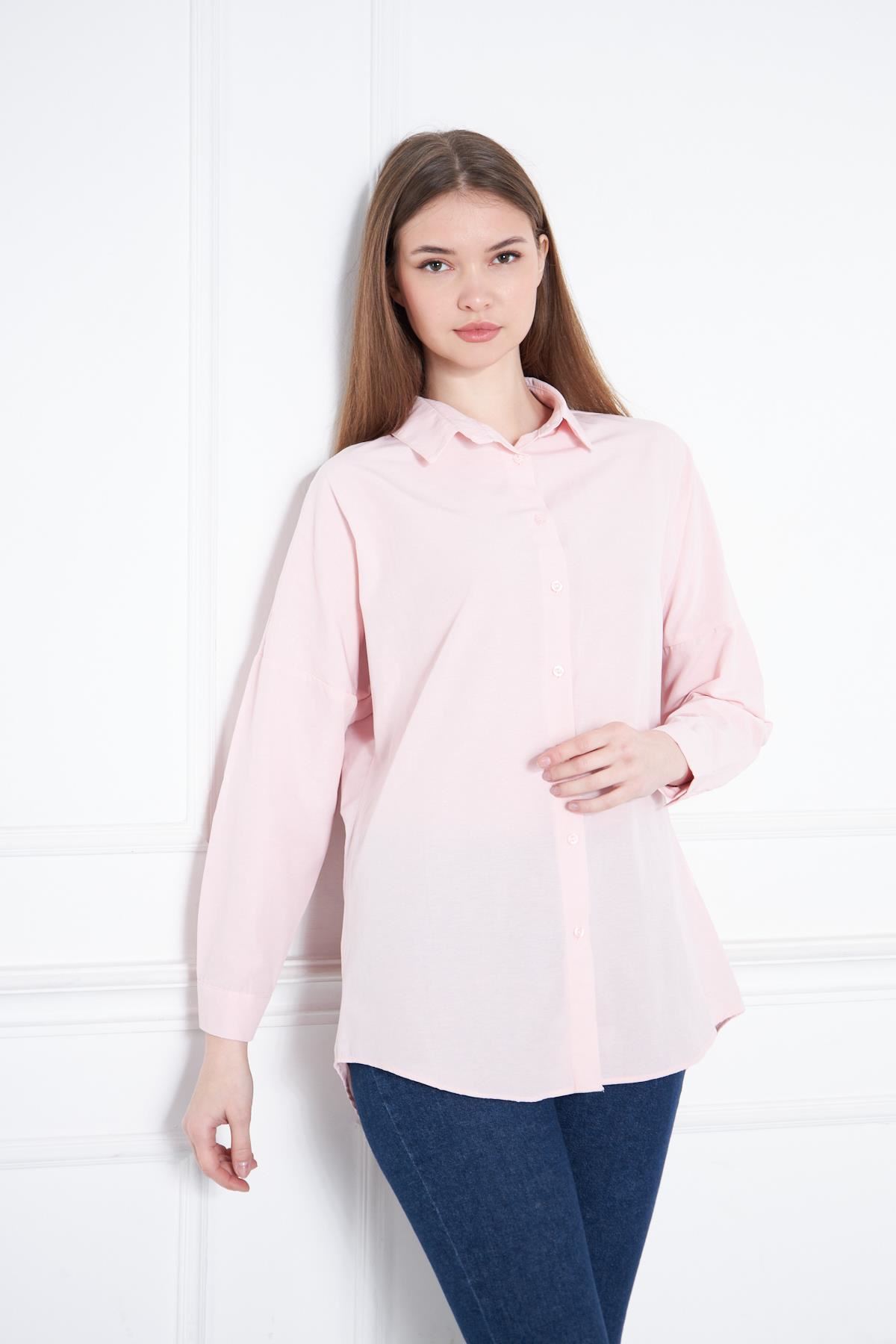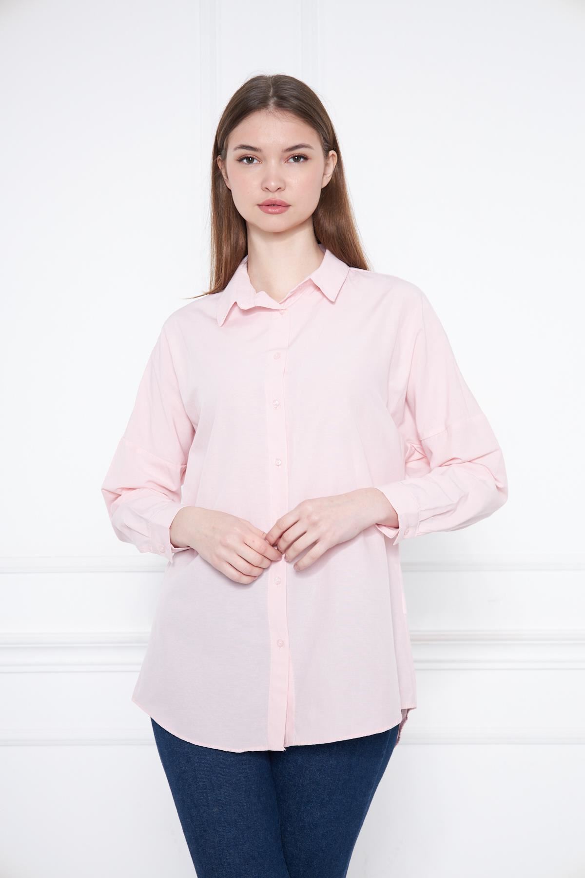 Kadın Oversize Uzun Basic Gömlek PUDRA