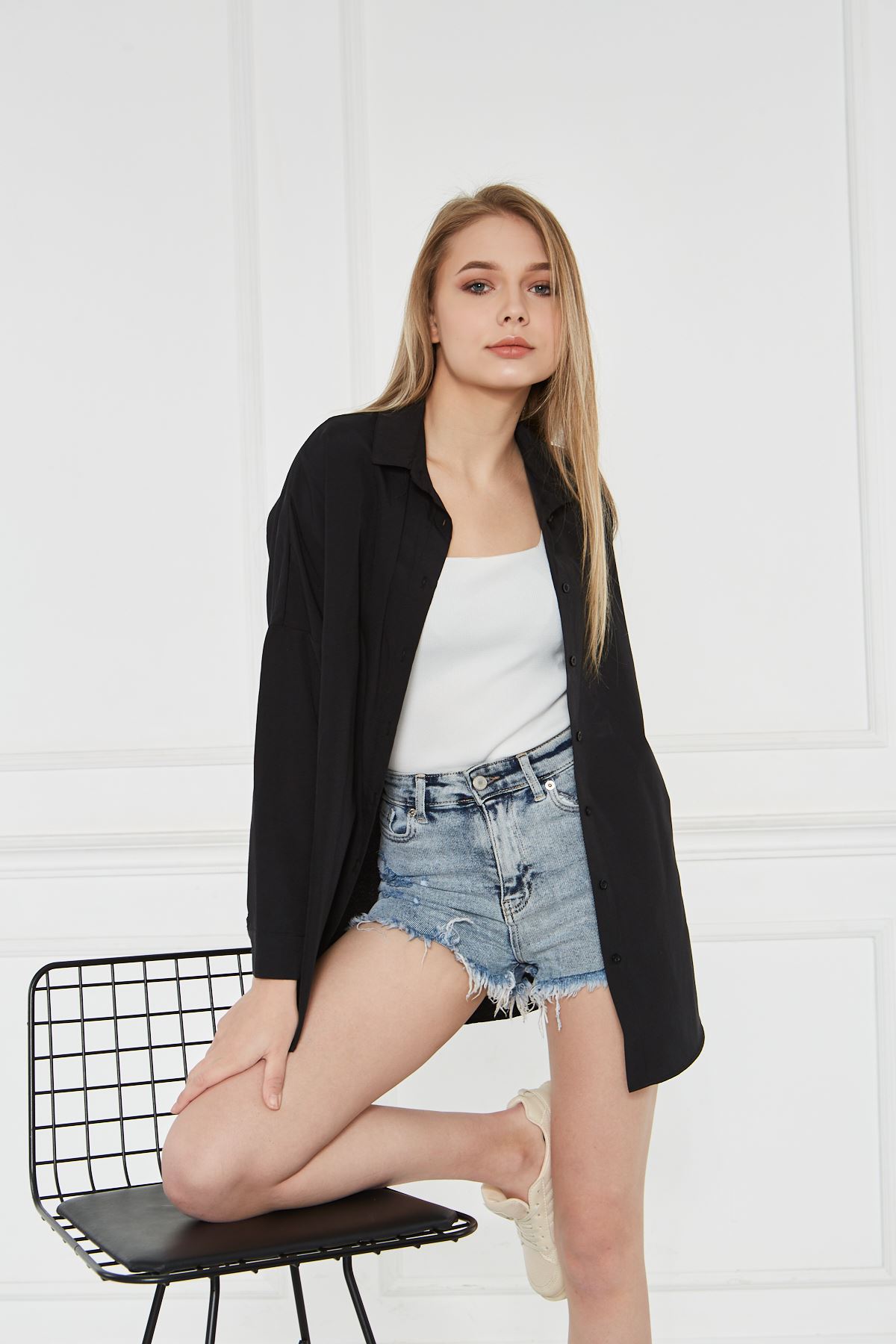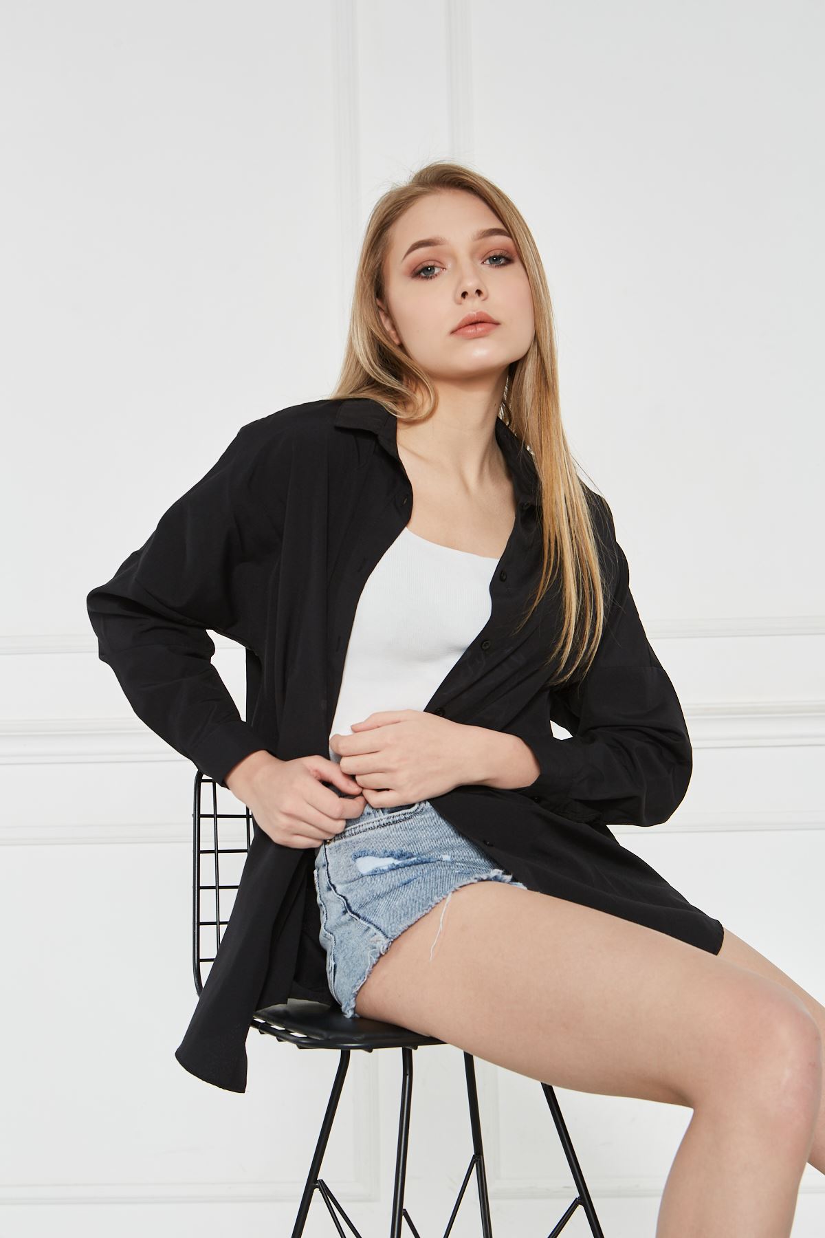 Kadın Oversize Uzun Basic Gömlek SİYAH