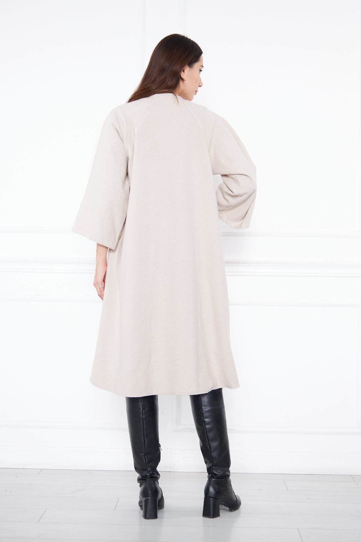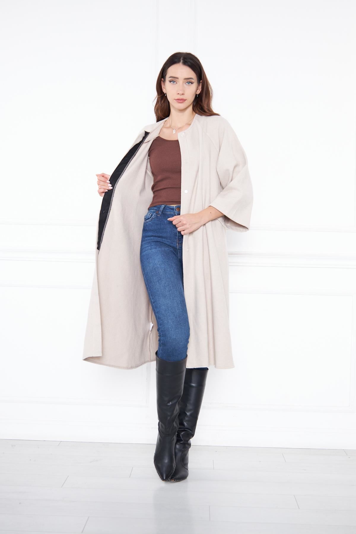 Kadın Astarsız Kuşak Basic Bol Beyaz Uzun Kaşe Kaban