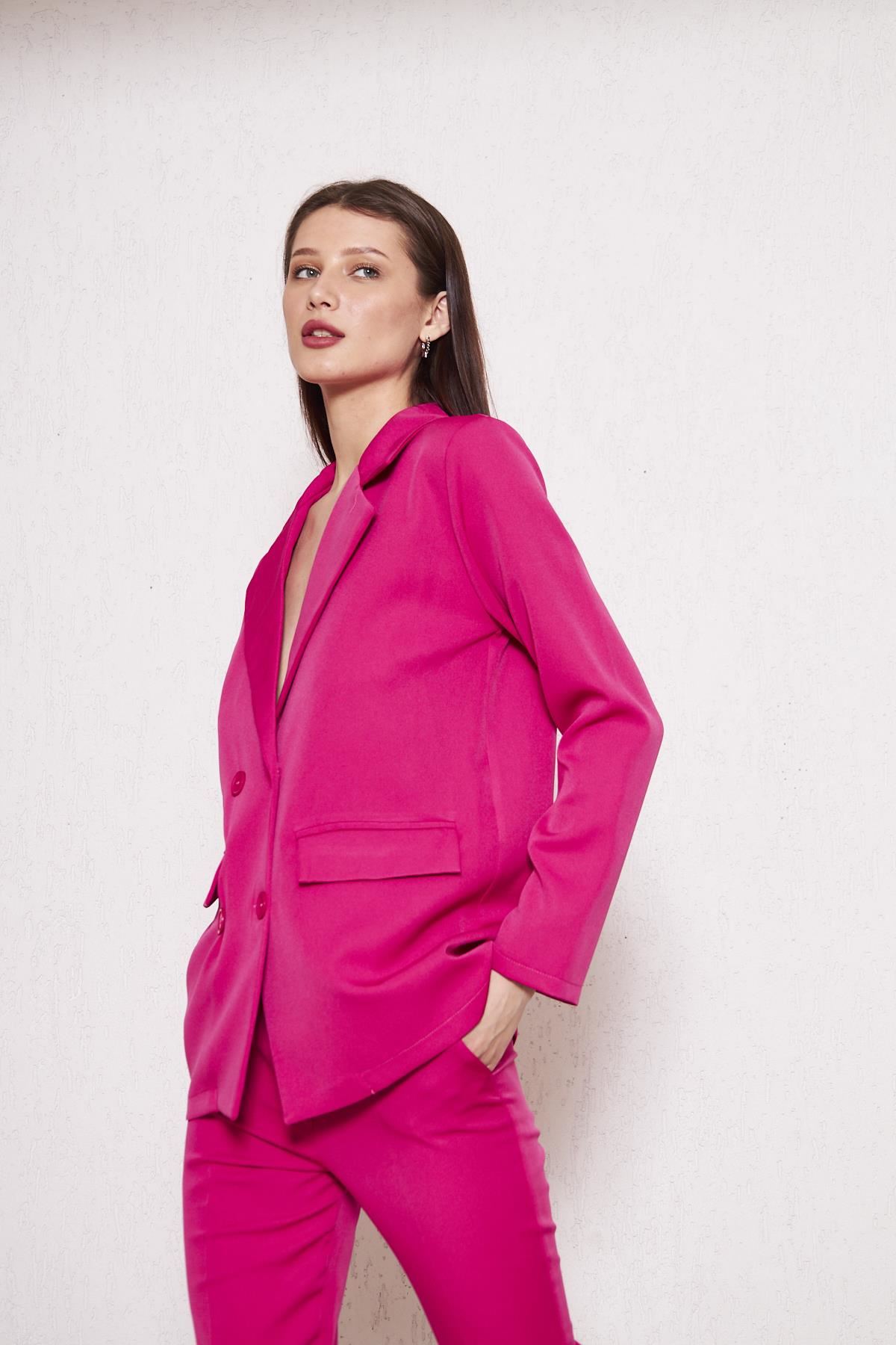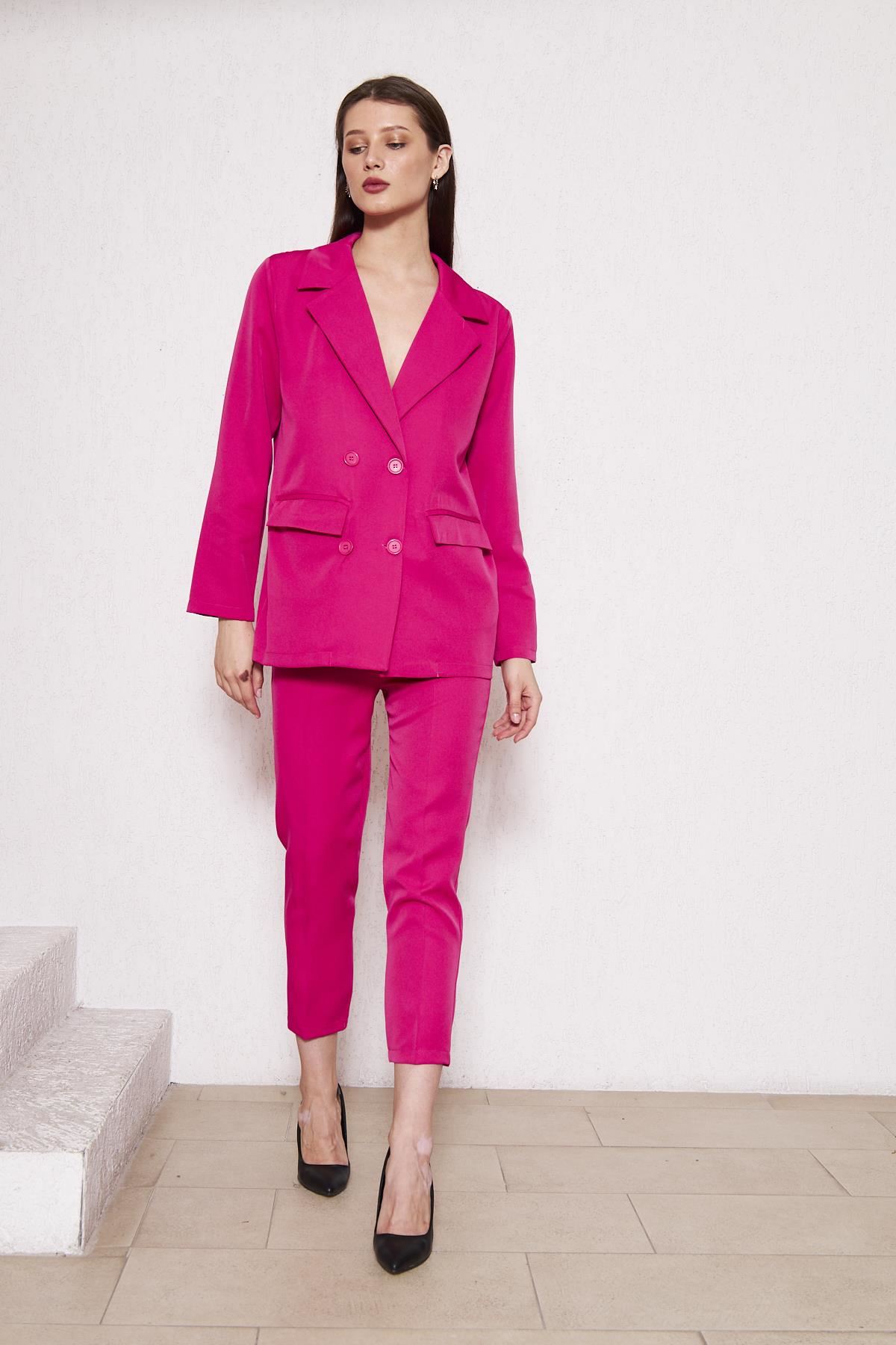 Kadın Oversize Ceket Pantolon Takım Fuşya