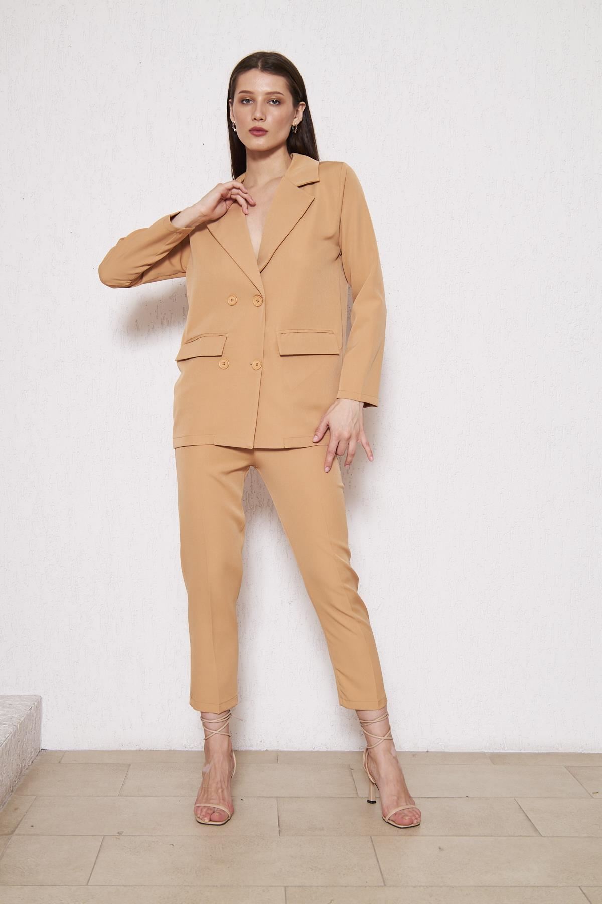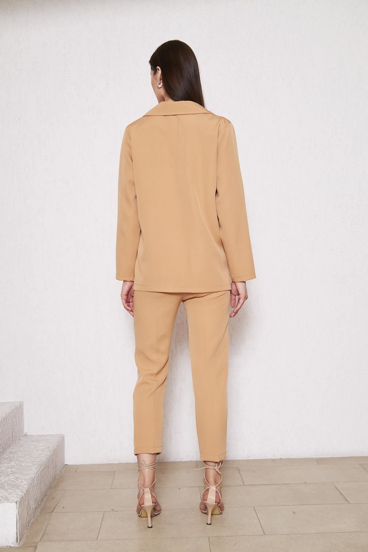 Kadın Oversize Ceket Pantolon Takım Taba