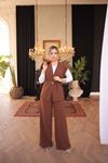 Kadın Şık Uzun Yelek Bol Paça Palazzo Pantolon Yelekli Takım