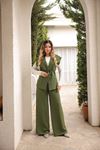 Kadın Şık Uzun Yelek Bol Paça Palazzo Pantolon Yelekli Takım YEŞİL