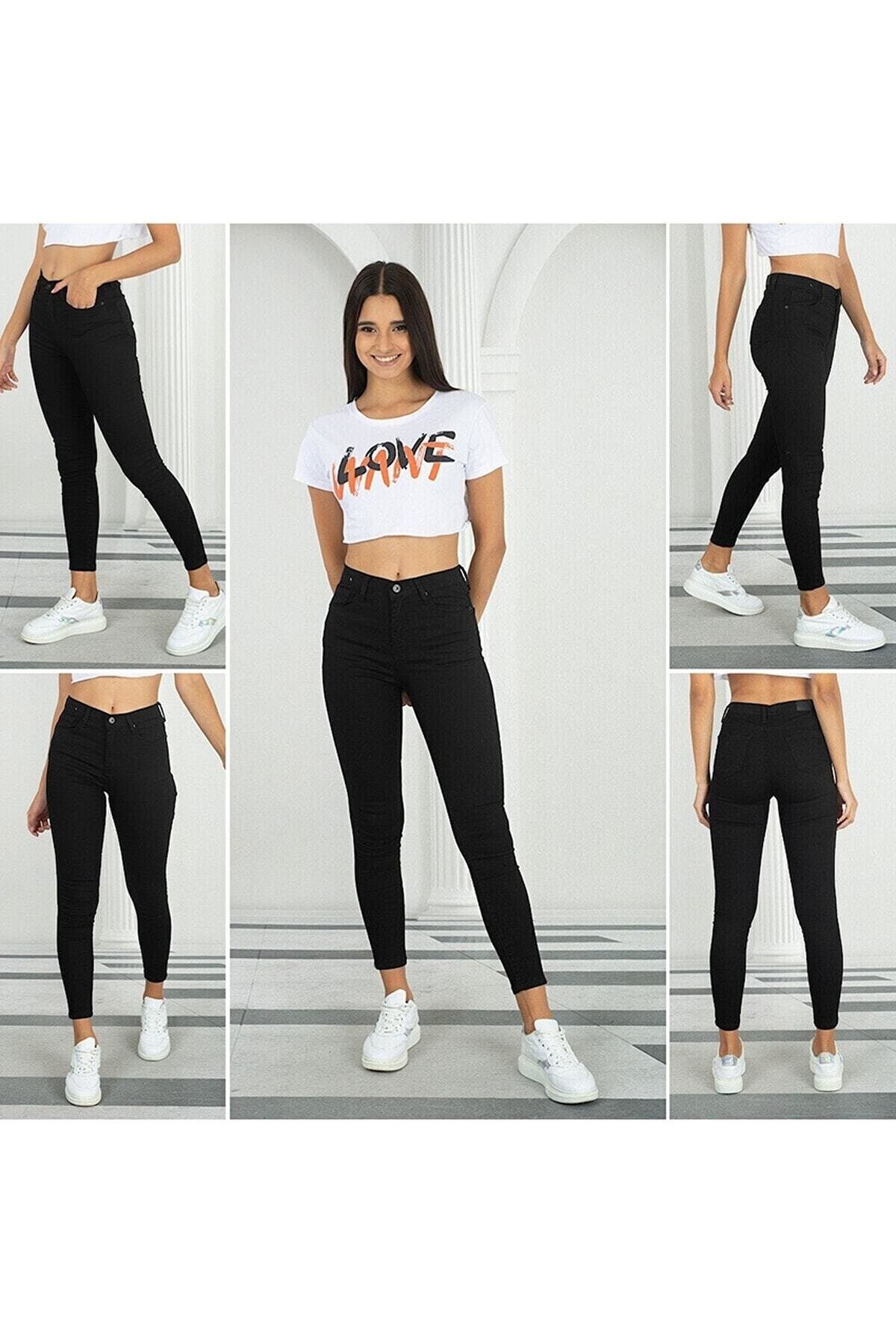 KADIN SKİNNY YÜKSEK BEL BİLEK BOY DAR PAÇA LİKRALI PANTOLON SİYAH