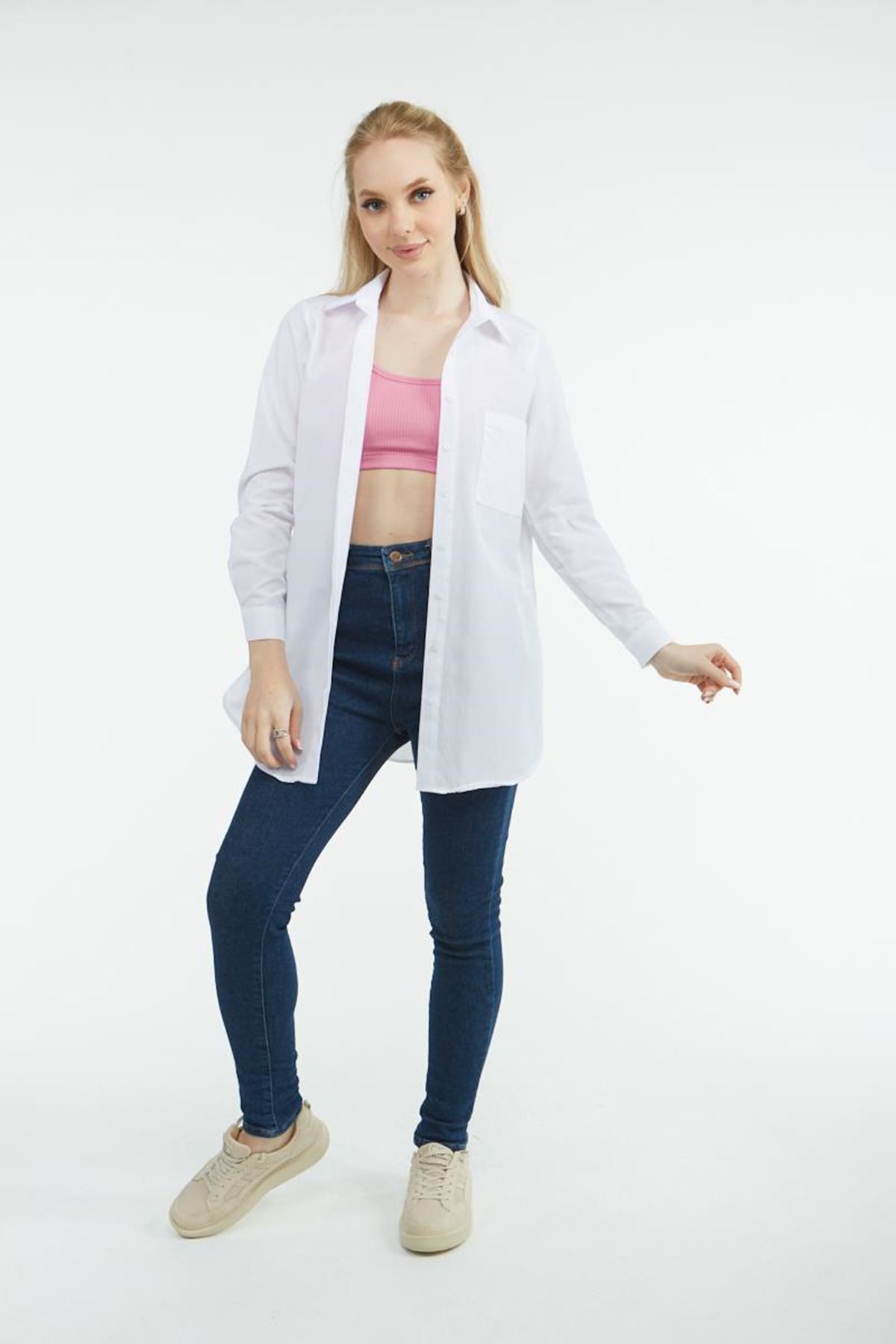 Kadın Slim Poplin Basic Gömlek BEYAZ