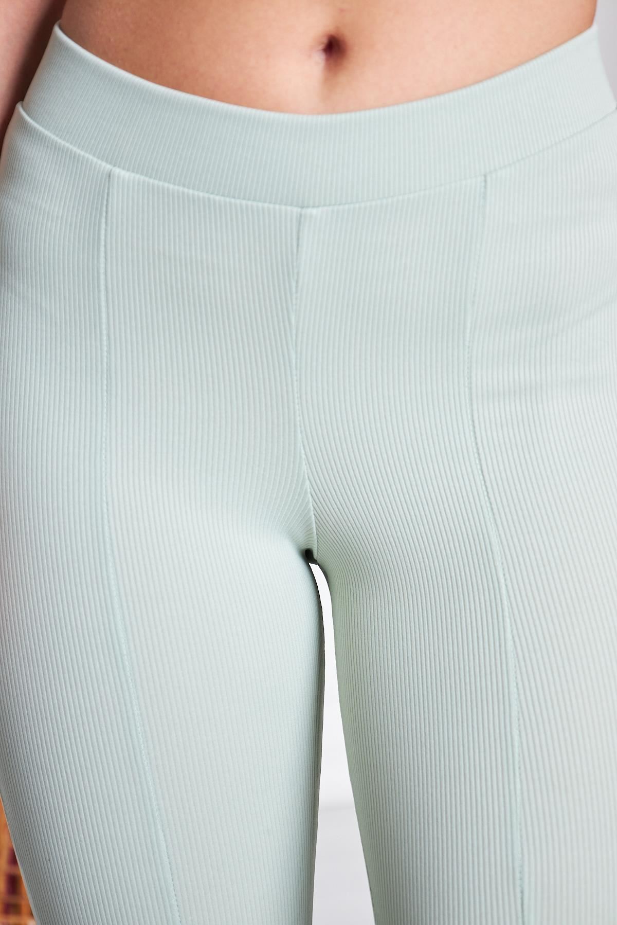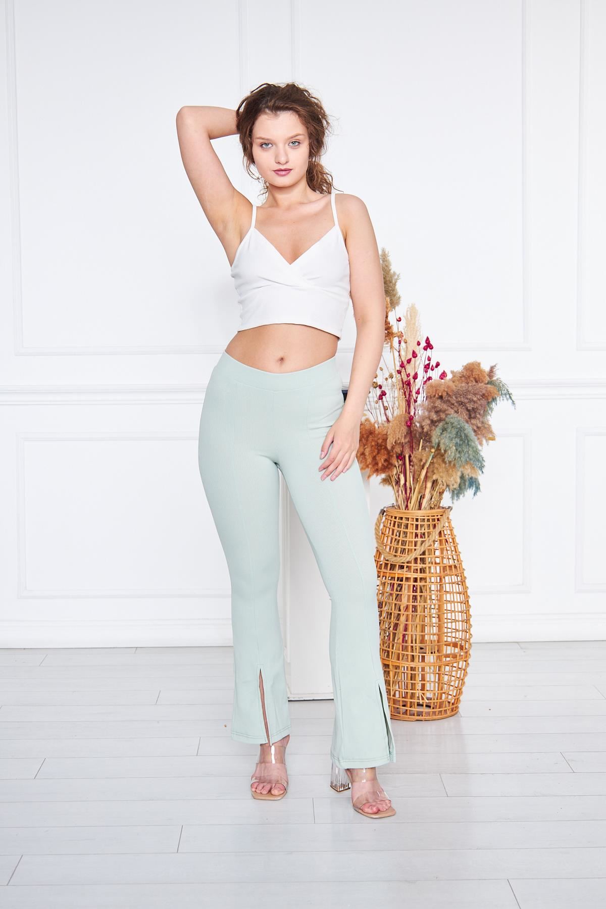 Kadın Yırtmaçlı Ispanyol Paça Pantolon SU YEŞİLİ