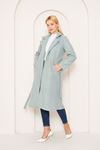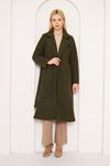 Kadın Yün Karışımlı Astarsız Buklet Kaban HAKİ