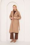 Kadın Yaka Kürk Detaylı Kışlık Kaşe Kaban Taba