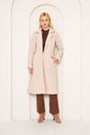 Kadın Premium Basic Uzun Krem Kaşe Kaban