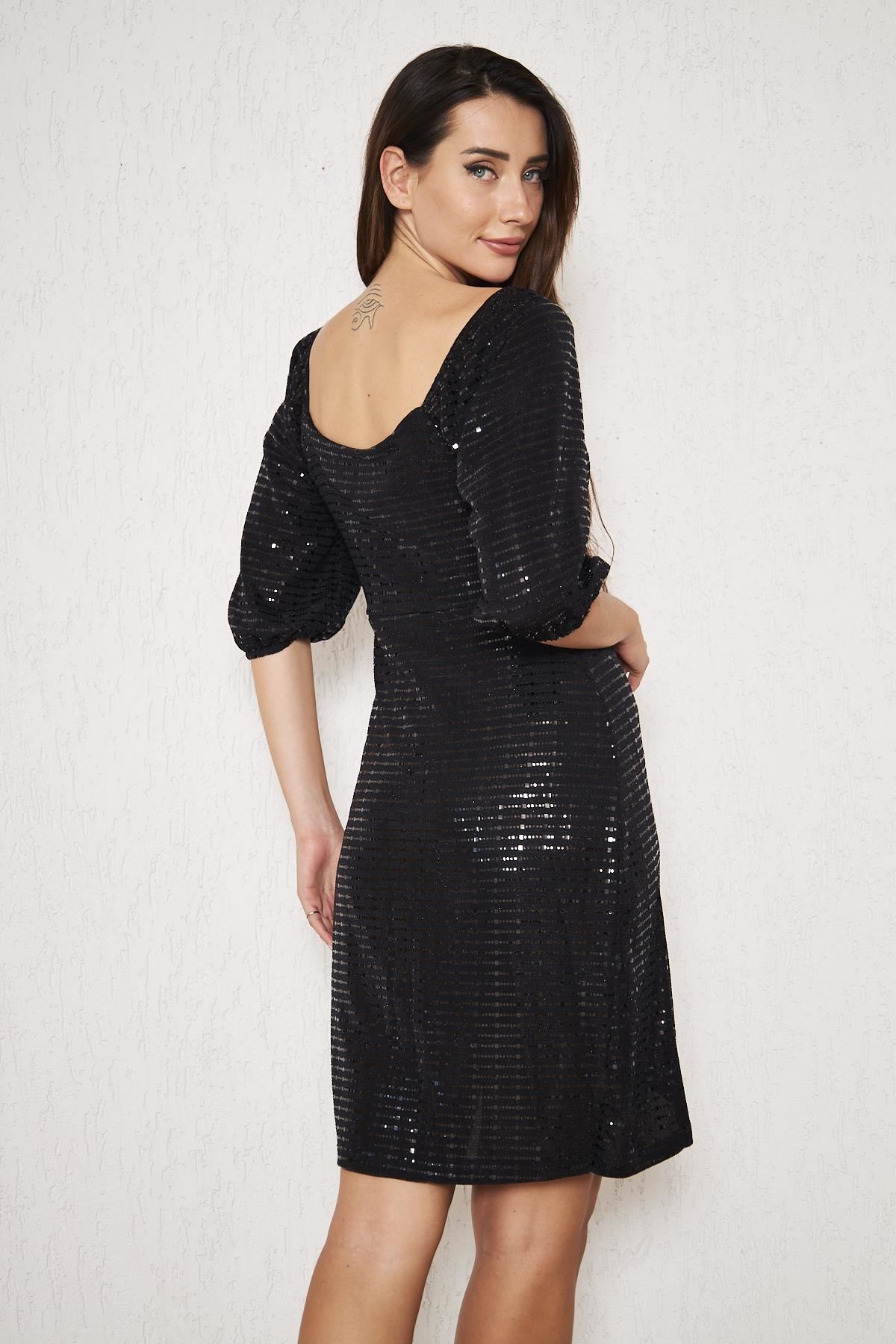 Kare Yaka Lastikli Yarım Kol Eteği Anvelop Mini Elbise SİYAH