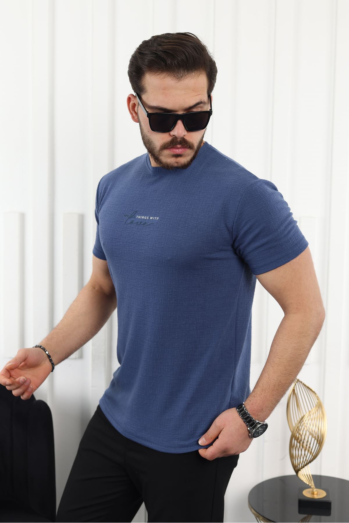 Erkek Slim Fit T-Shirt BEBE MAVİ