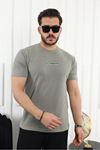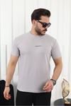 Kendinden Desenli Baskılı T-Shirt GRİ