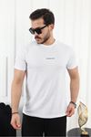 Erkek Slim Fit Waffle Kumaş Sıfır Yaka Nakışlı T-Shirt BEYAZ