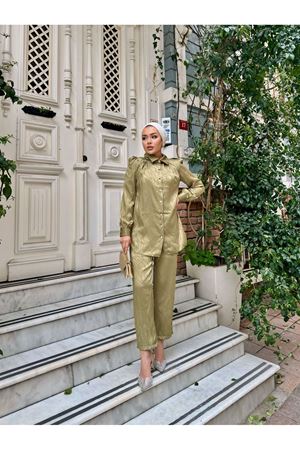 Kendinden Desenli Gömlekli Takım KREM