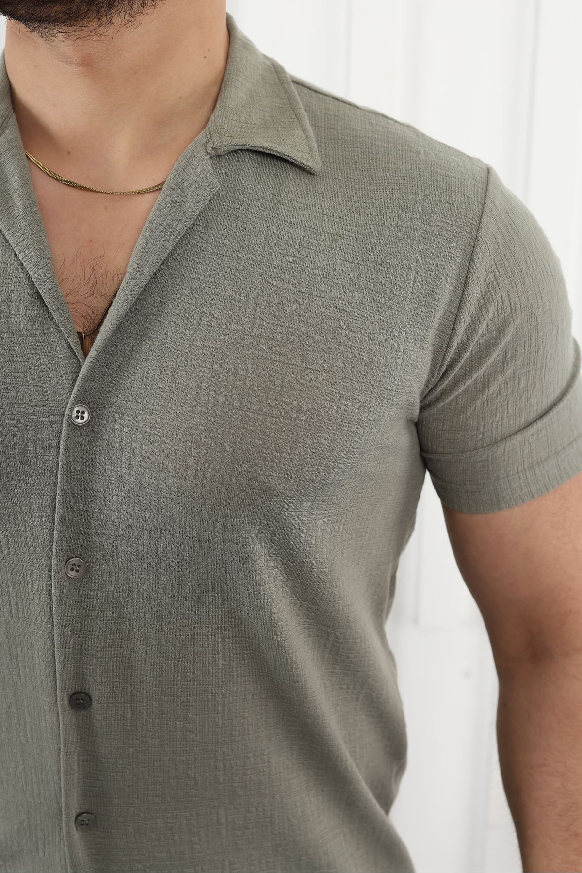 Erkek Kısa Kollu Slim Fit Yazlık Basic Şık Gömlek K.GRİ
