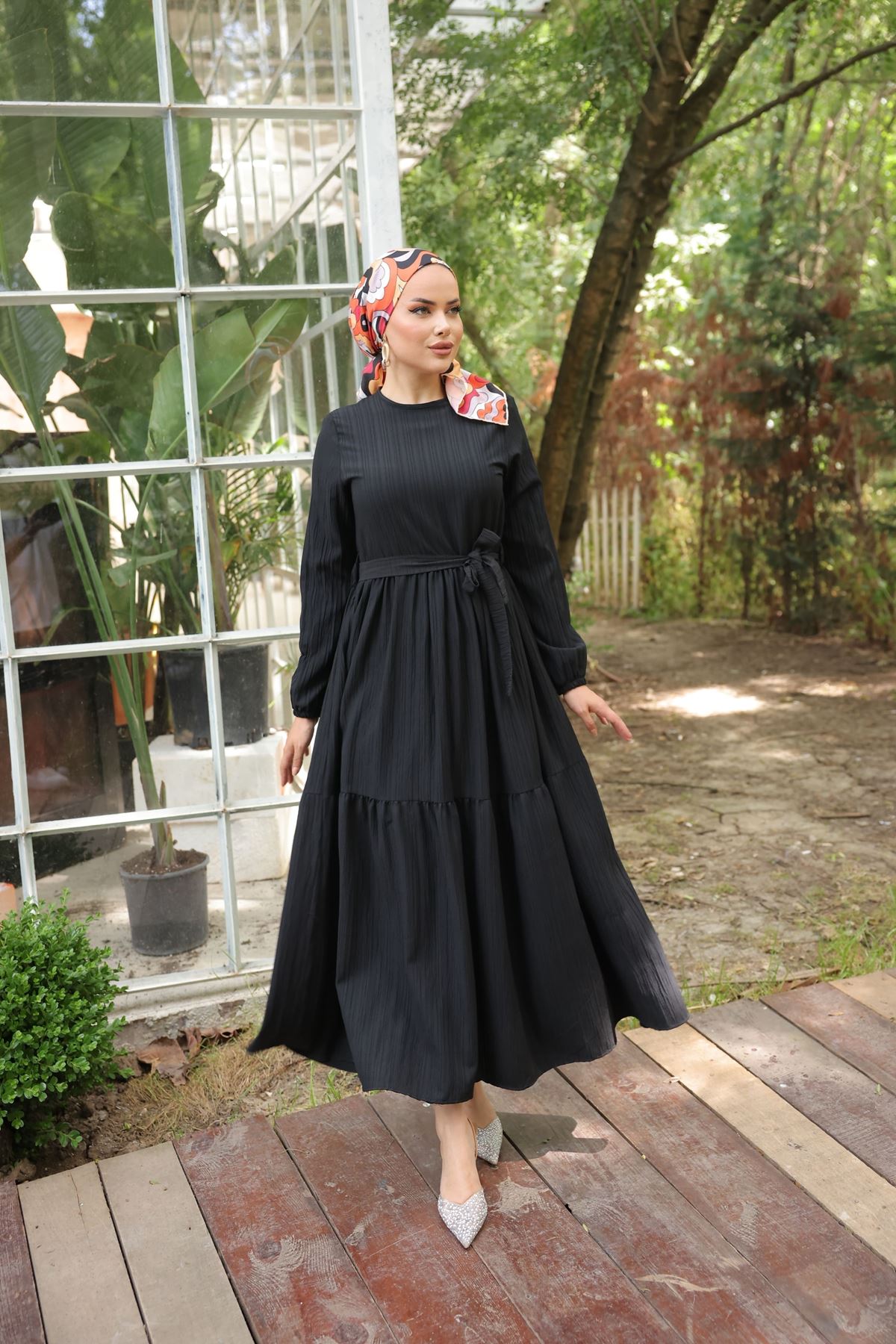 Maya Kumaş Beli Büzgülü Elbise SU YEŞİLİ