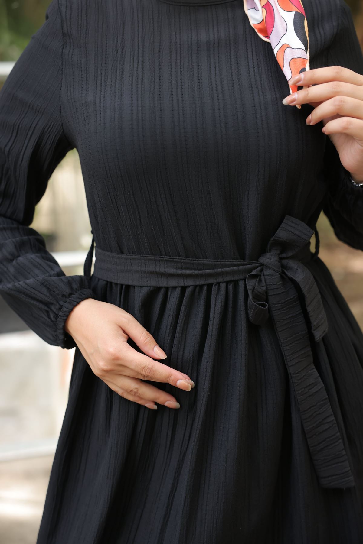 Kadın Güpür Desenli Gömlek Yaka Elbise SİYAH