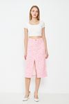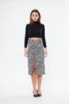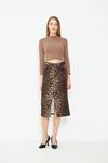 Leopar Desenli Yırtmaçlı Kot Etek KAHVE