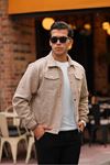 Erkek Dar Kesim Nubuk Süet Astarsız Likralı Su Itici Kolej Ceket PUDRA