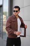 Erkek A Kalite Slim Fit Denim Kot Ceket KESTANE