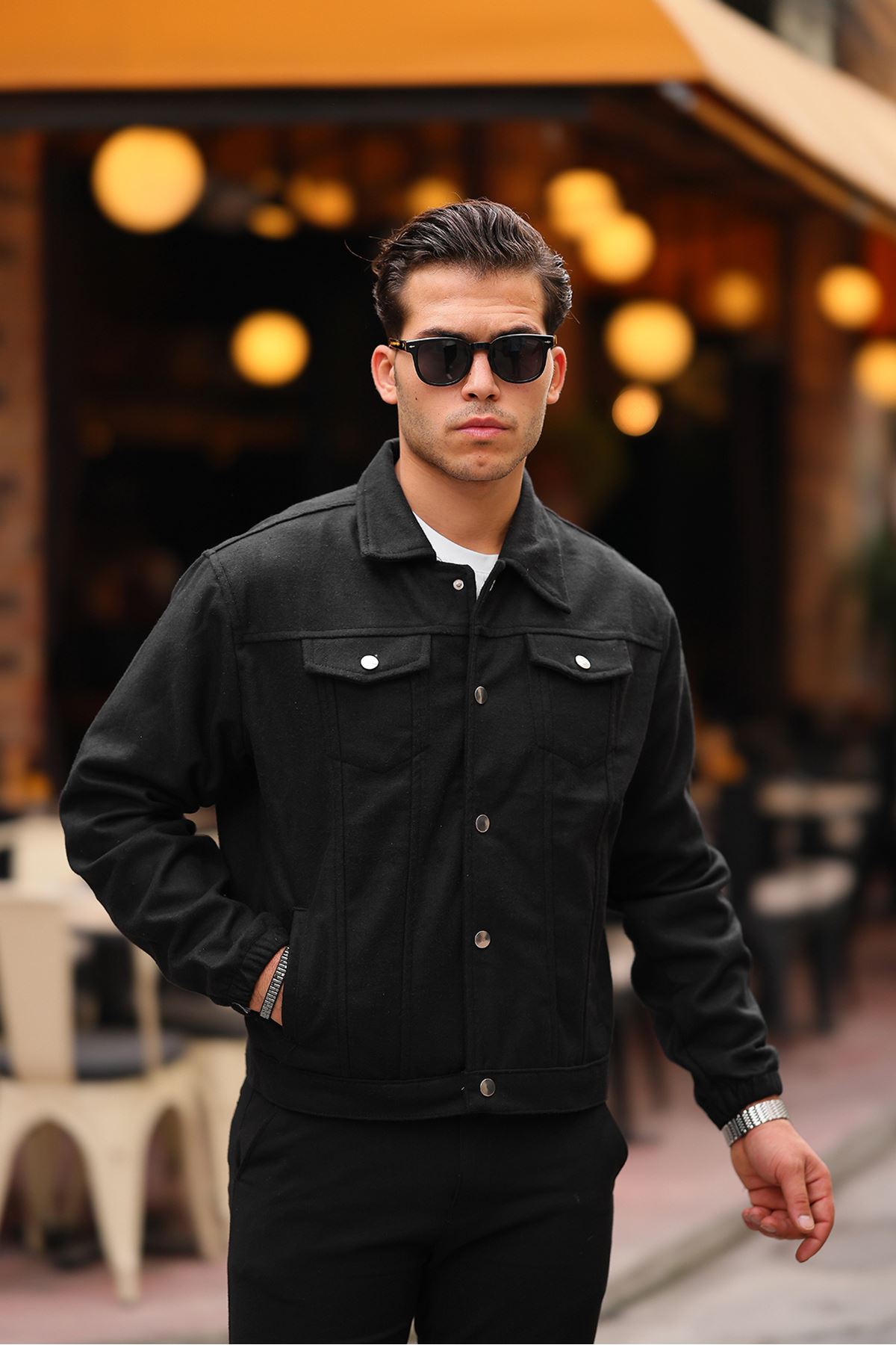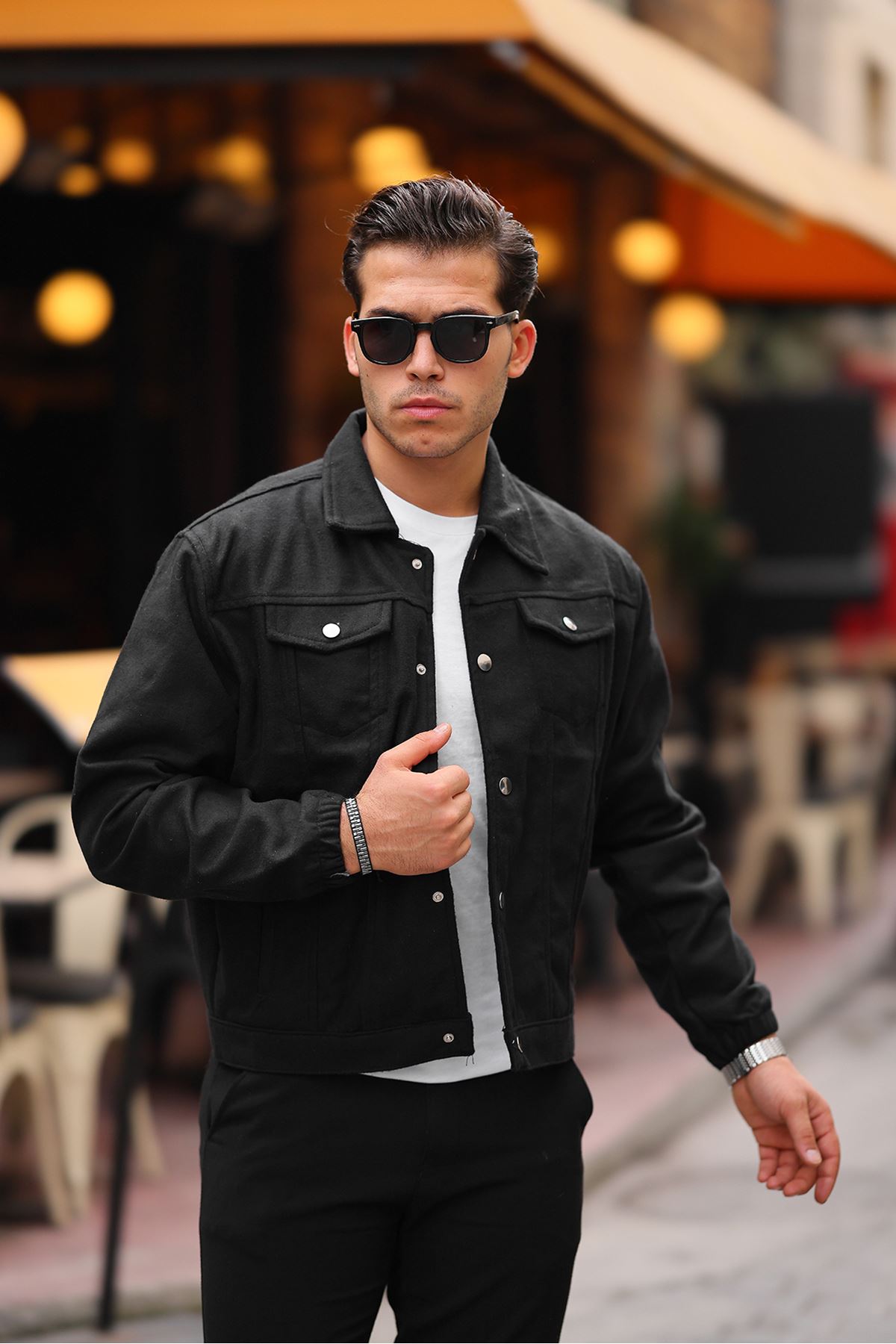 Erkek Dar Kesim Nubuk Süet Astarsız Likralı Su Itici Kolej Ceket SİYAH