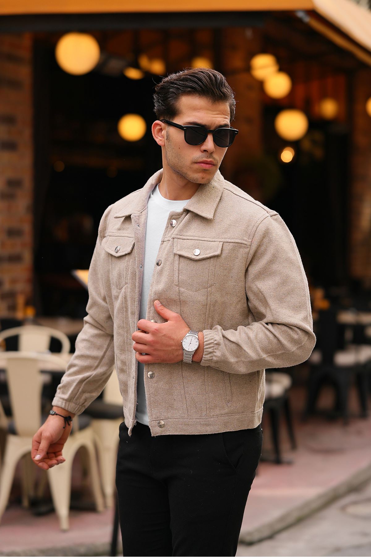 Erkek Dar Kesim Nubuk Süet Astarsız Likralı Su Itici Kolej Ceket SİYAH