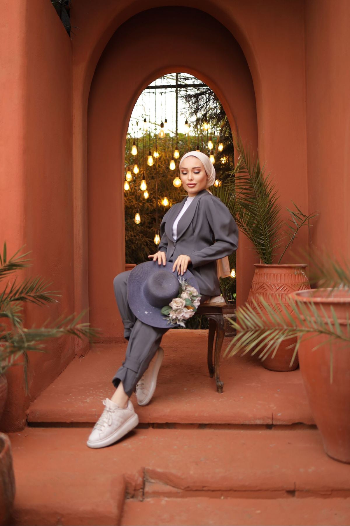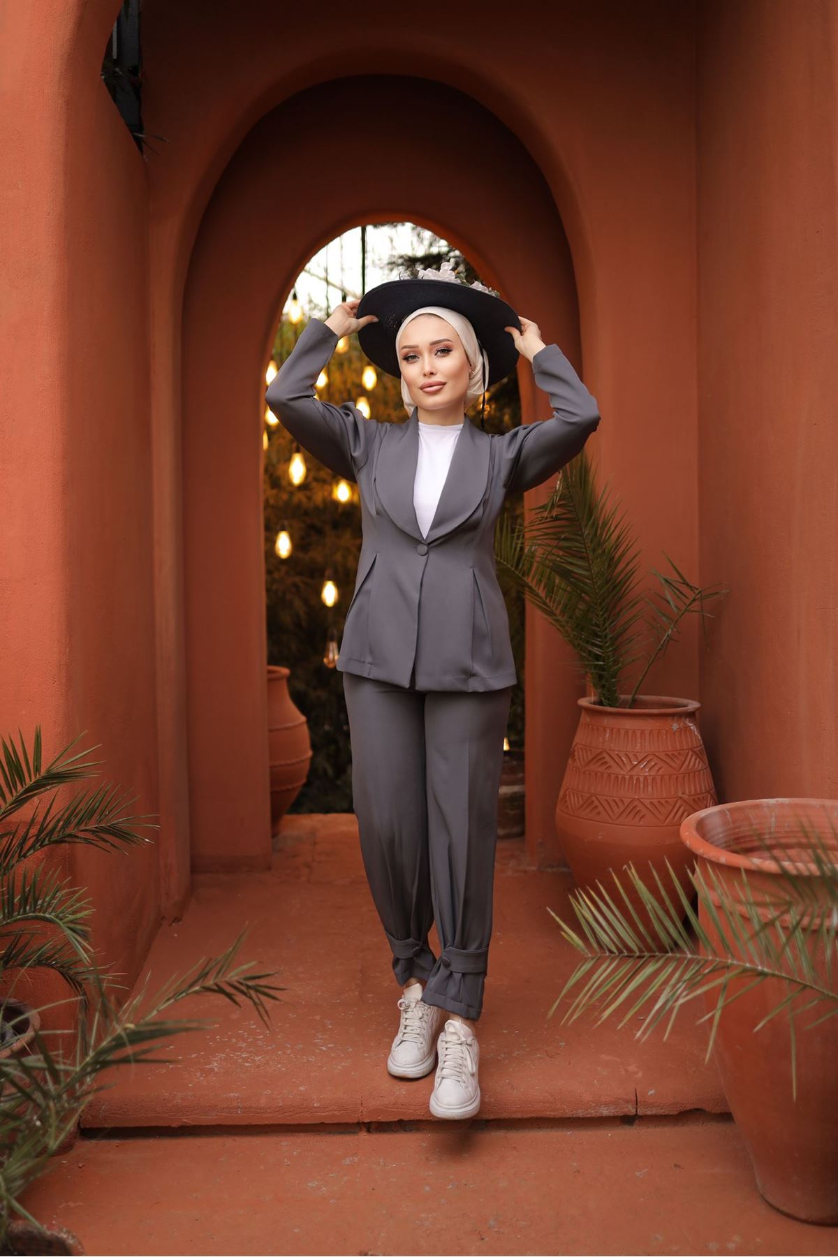 Paça Düğmeli Ceket Pantolon Takım FÜME