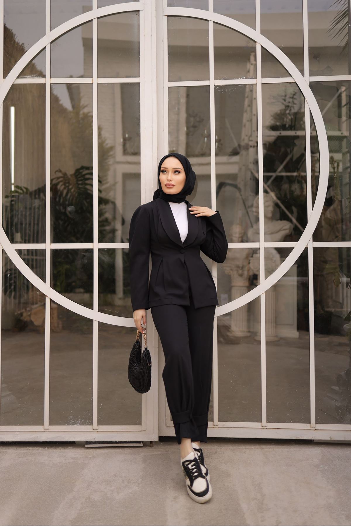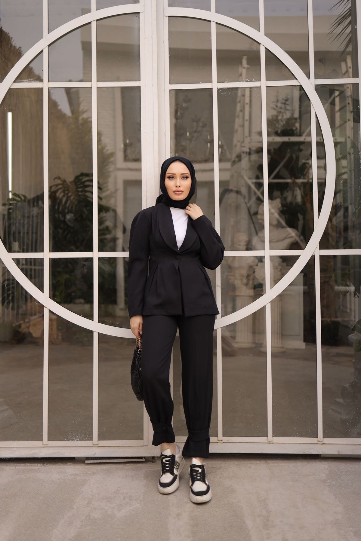 Kadın Tunik Gömlek Bol Paça Palazzo Pantolon Tesettür Takım SİYAH