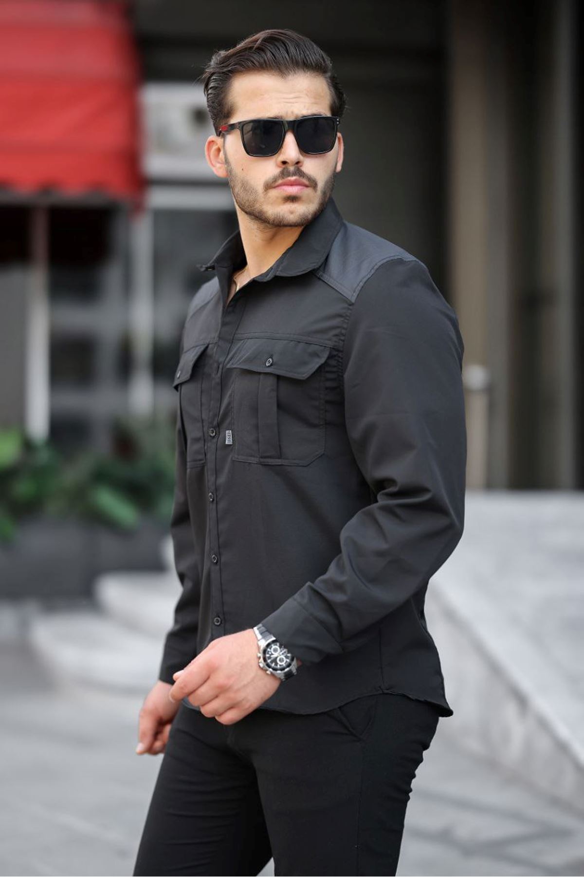 Erkek Çift Cep Paraşüt Kumaş Gömlek Antrasit
