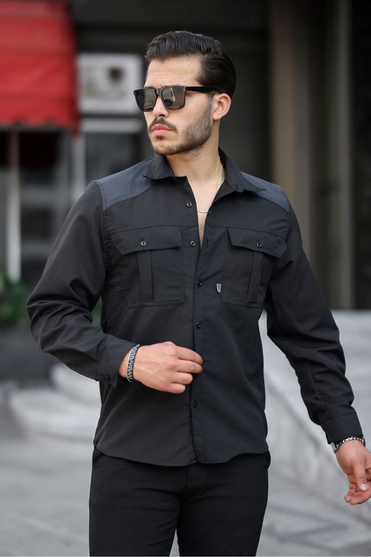 Paraşüt Kumaş Arka Patlı Gömlek SİYAH