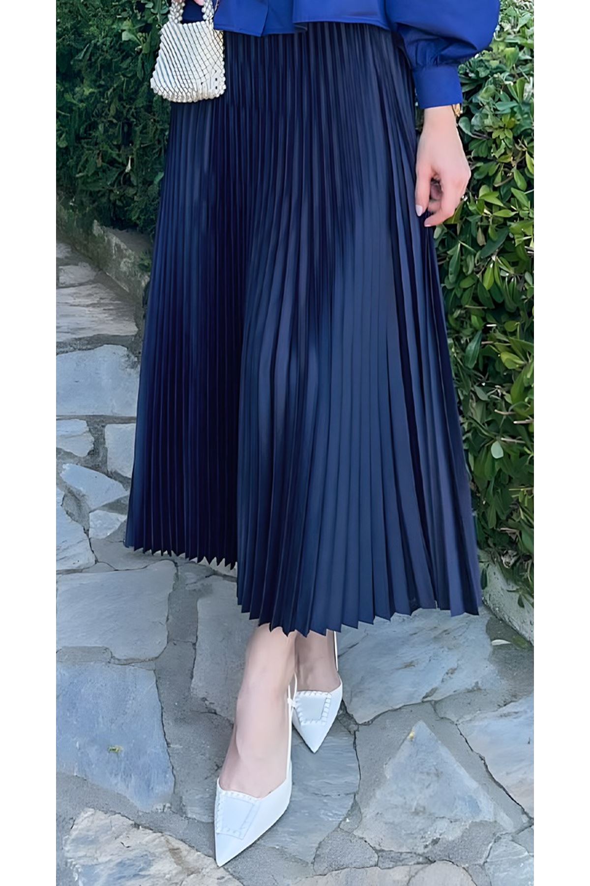 Kadın 3 Lü Paket Basic Pilise Bol Lastikli Uzun Etek