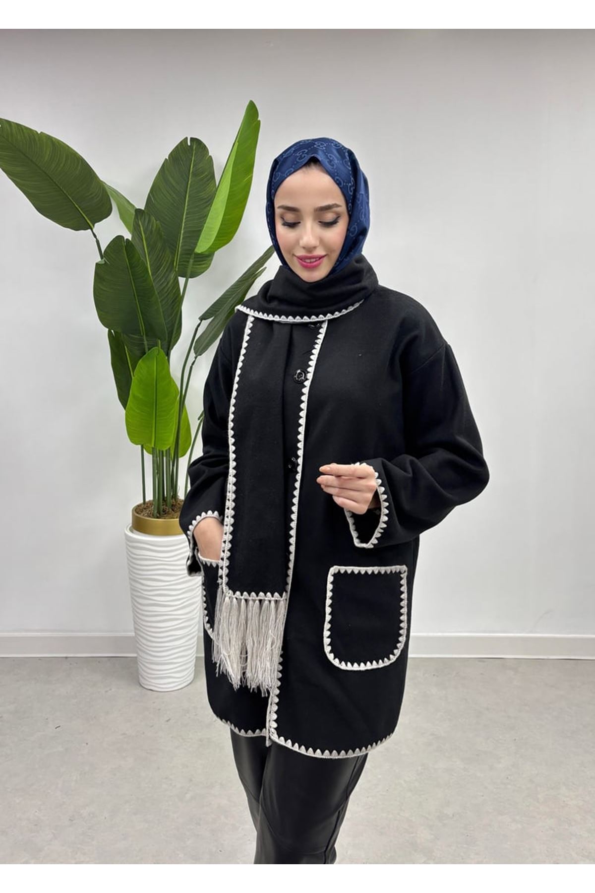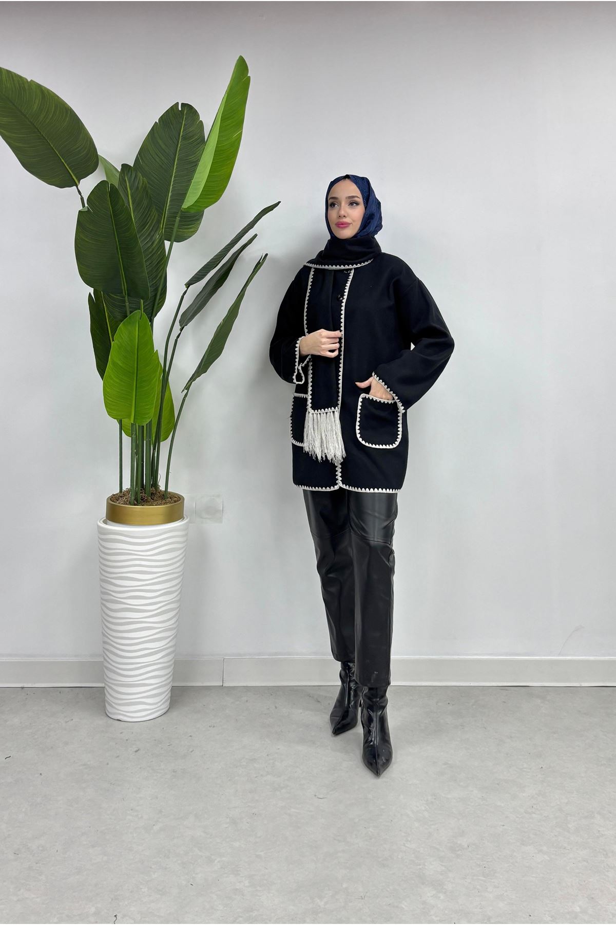 Şal Yaka Biyeli Kaşe Hırka SİYAH