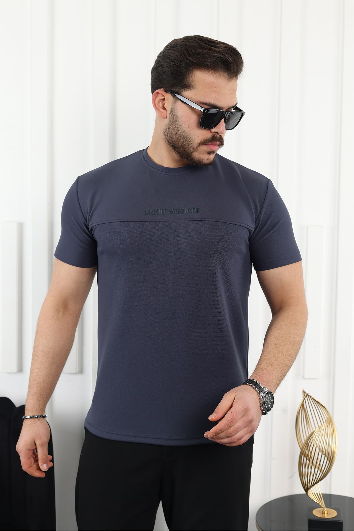 Şerit Detaylı Baskılı T-Shirt Antrasit