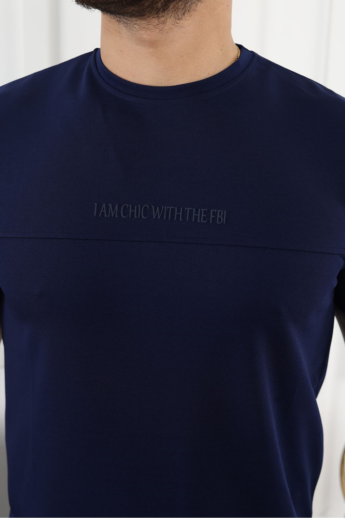 Şerit Detaylı Baskılı T-Shirt LACİVERT
