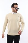 Fermuar Yaka Çizgi Detaylı Erkek Kazak KREM